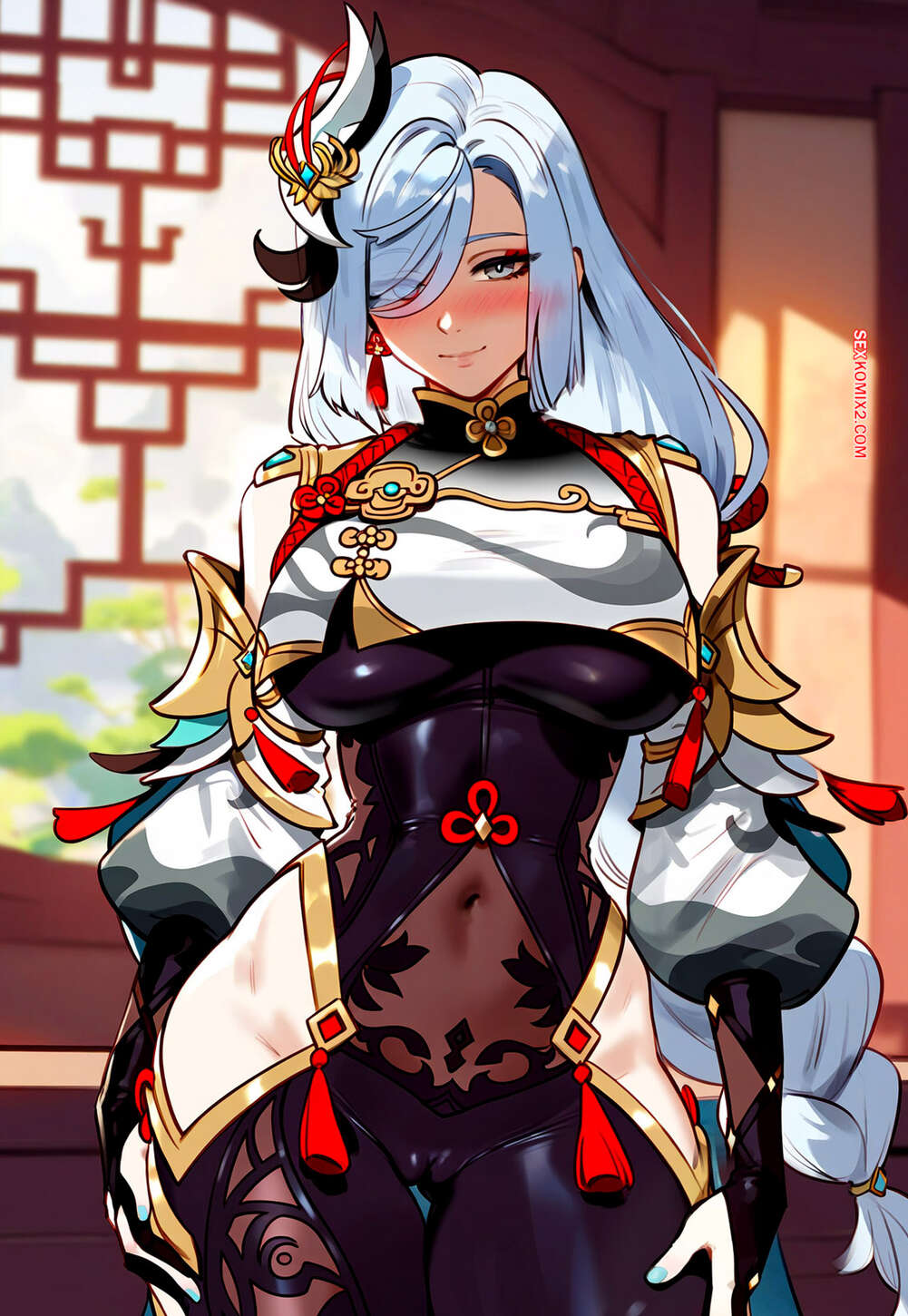 Порно комикс Shenhe x BBC. Floxin Горячая блондинка решила повеселиться со своим темнокожим дружком. Она встала на колени и отсосала его большой хуй, после чего раздвинула ножки и дала себя выебать.