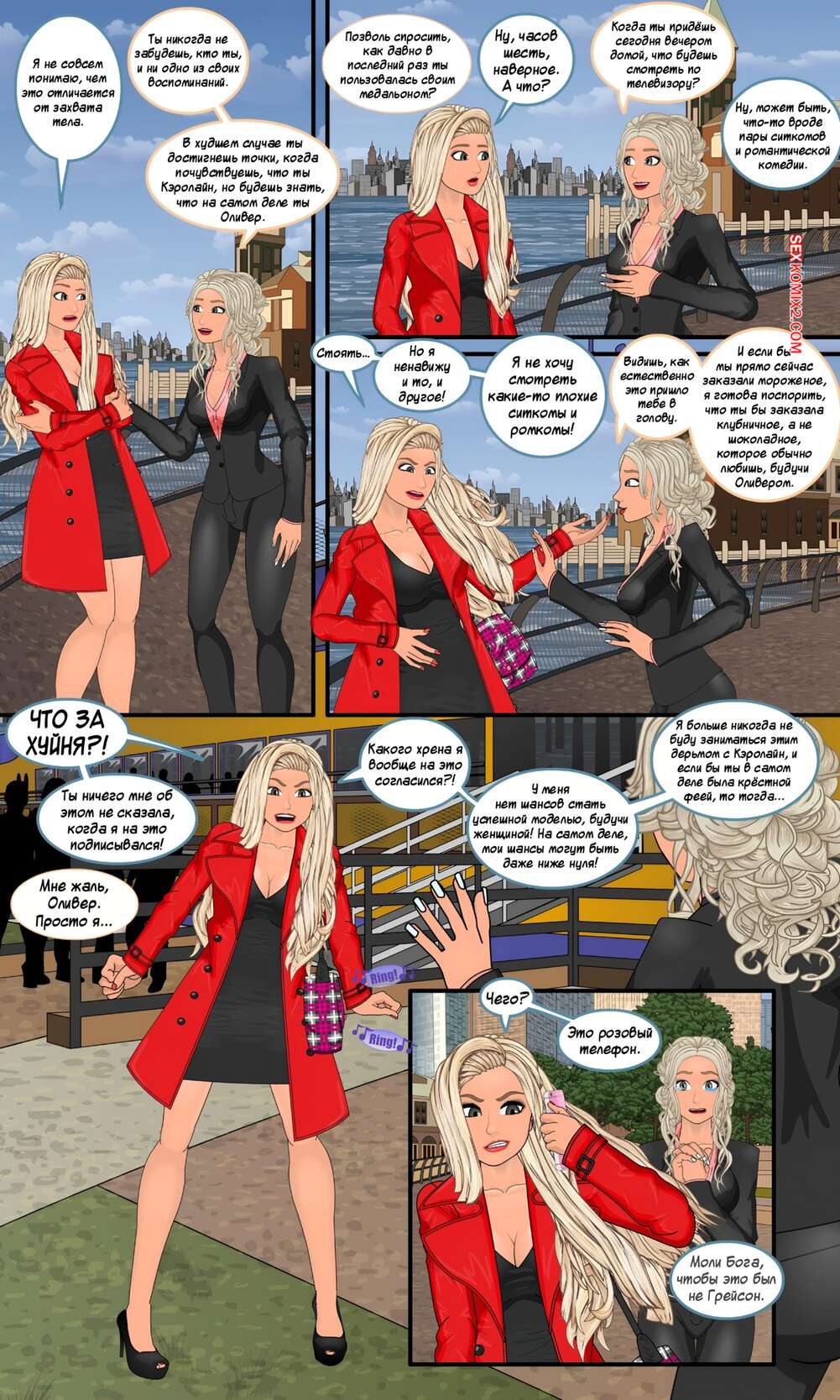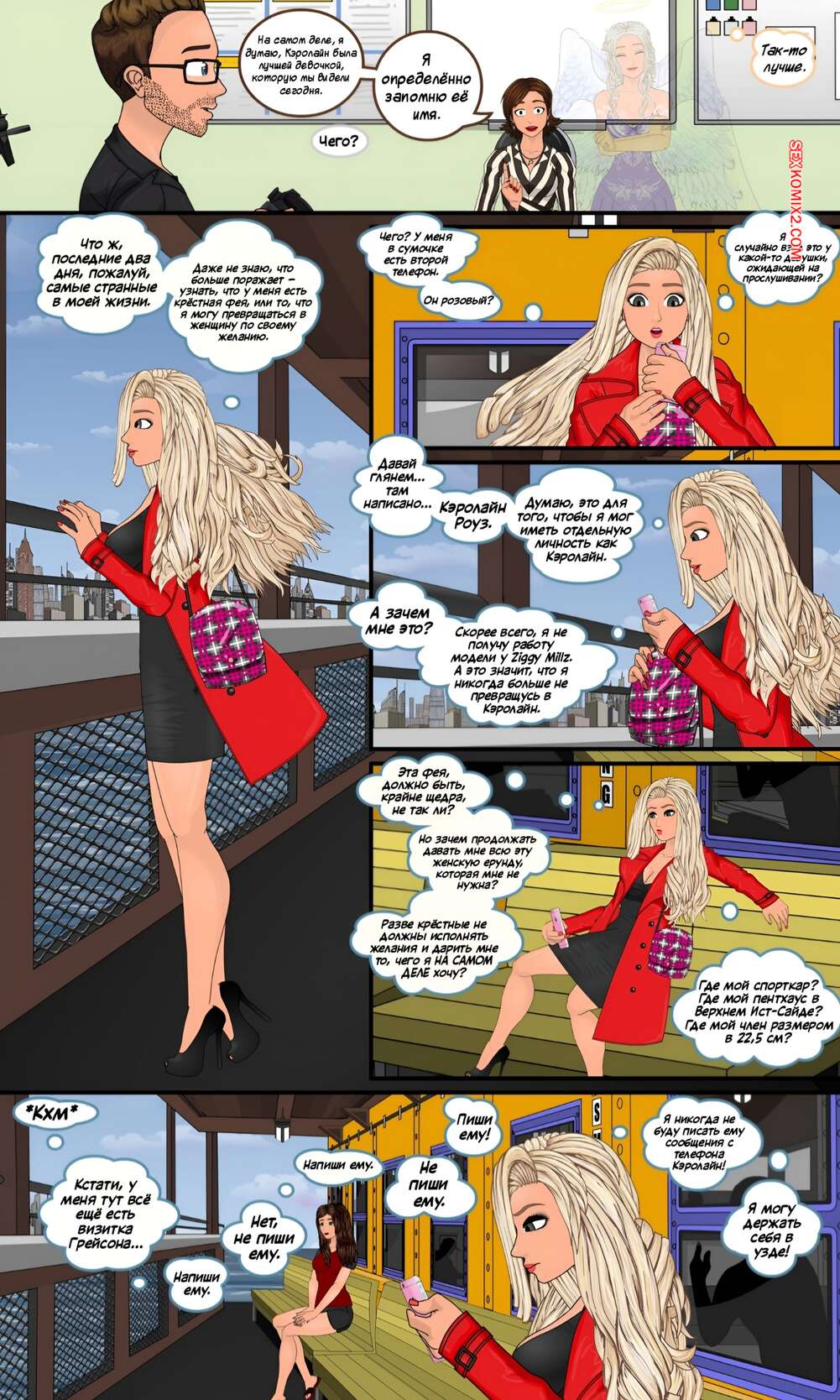 Порно комикс Godmother. Часть 2. Sapphirefoxx Парень вновь превращается в аппетитную блондинку, желая немного пошалить со своим прекрасным телом. Красотка ложится на кровать и начинает ласкать пальчиками свою пизду.