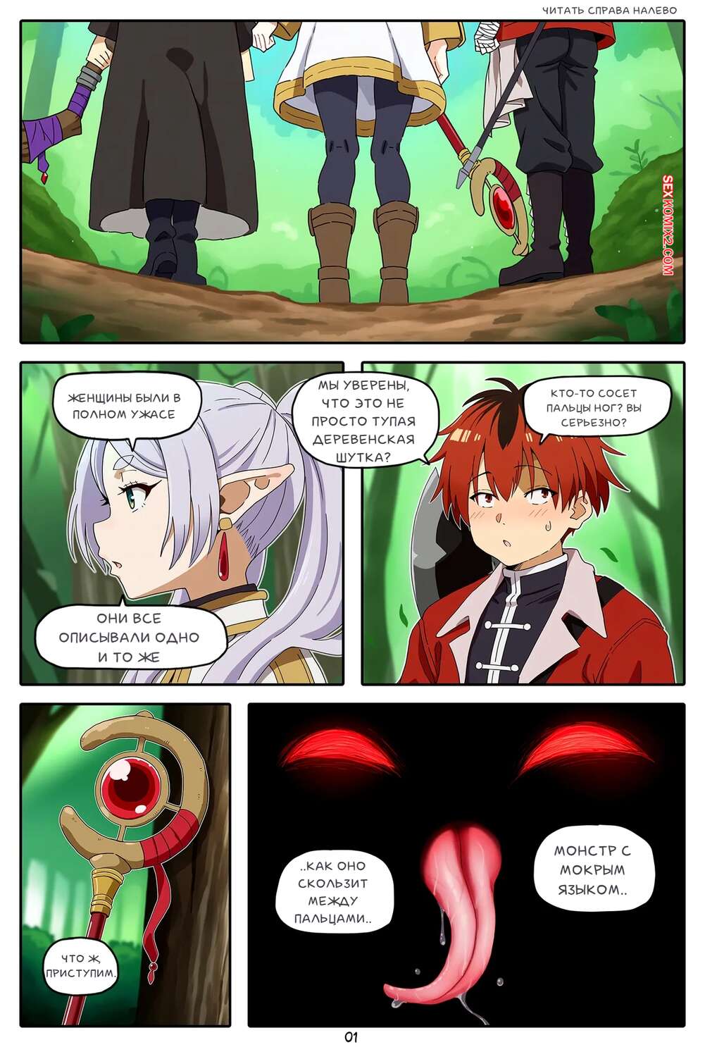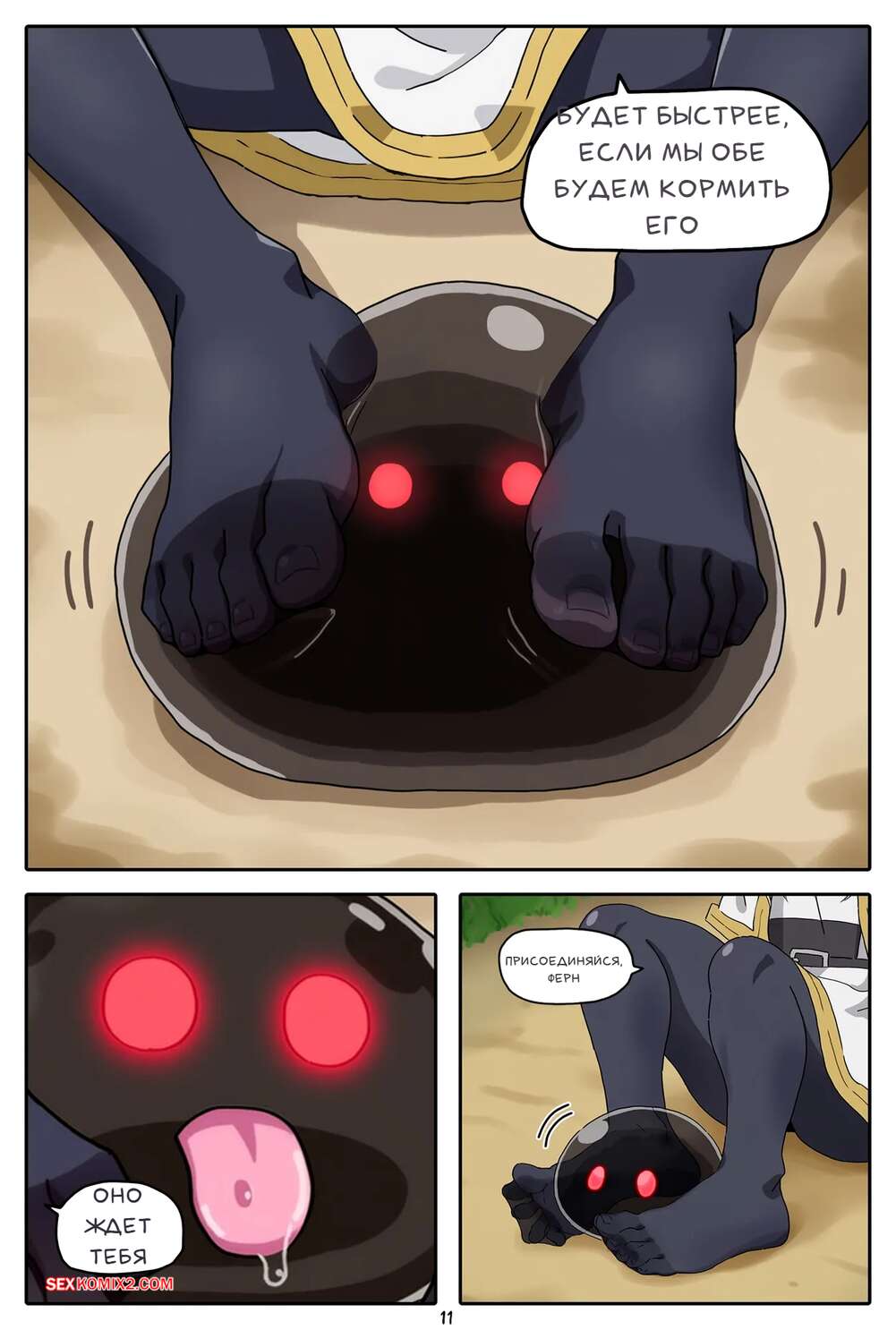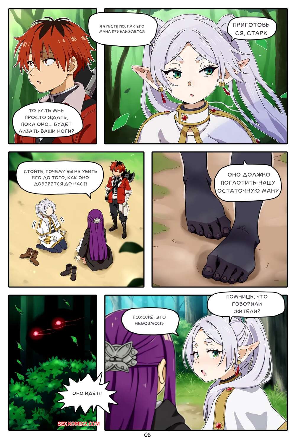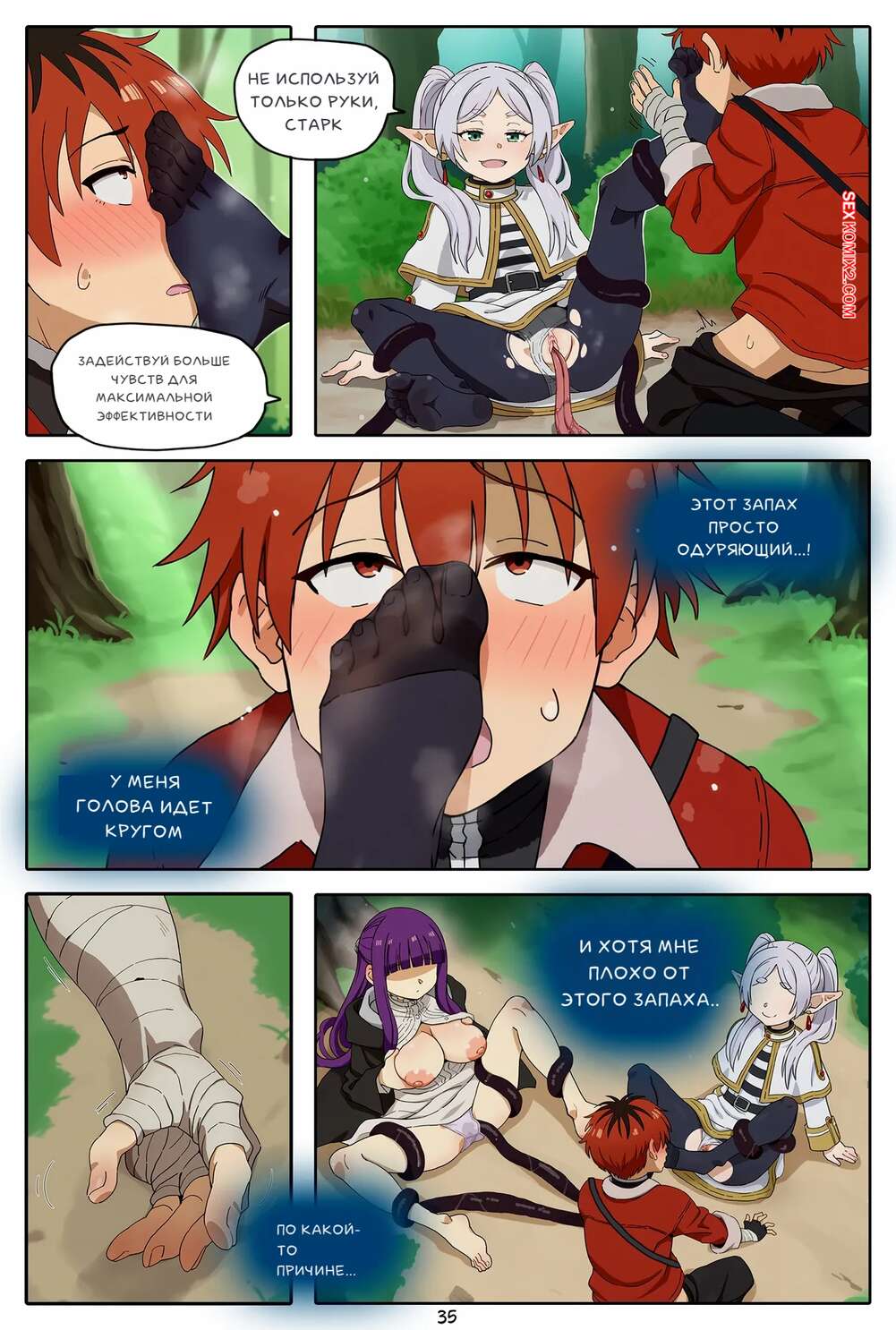 Порно комикс Sousou No Frieren. Фрирен Квест. Лизун ног. A Frieren Quest. Toe Sucker. Baba Аппетитные красотки нашли в лесу странное существо, которое стало лизать их ножки, делая им очень приятно. Существо пошло дальше и стало ласкать пизденки красоток, чему они были совсем не против.