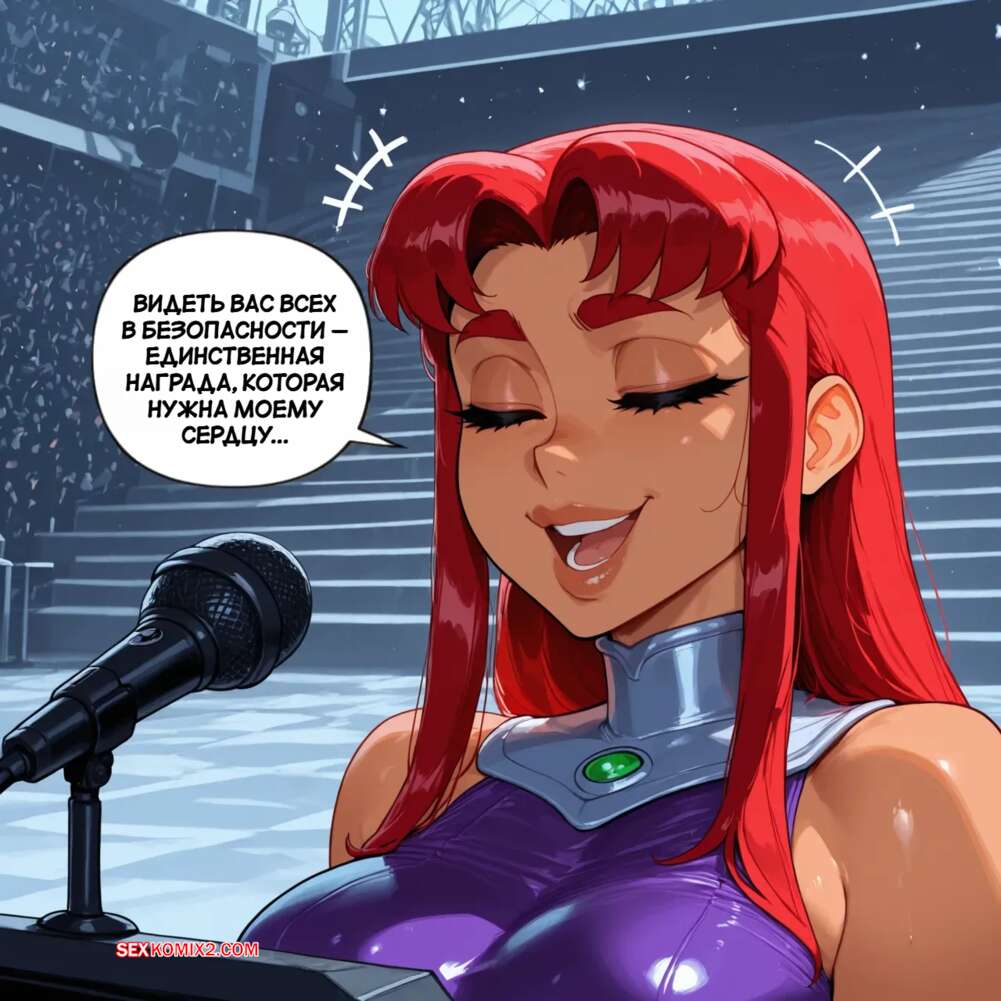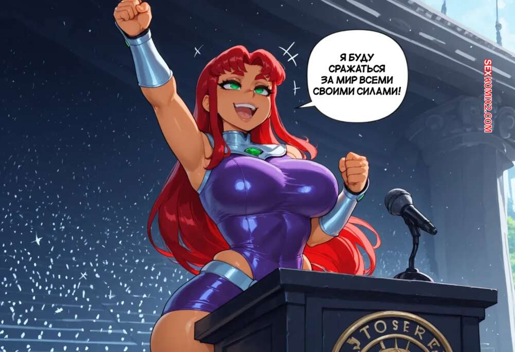Порно комикс Teen Titans. Старфаер и большой белый член. Starfire x BWC. FuyuBloom. Рыжая красотка Старфаер возбуждена и хочет секса. Она встала на колени перед своим дружком и взяла в ротик его член, после чего раздвинула ножки и дала выебать свою пизду.