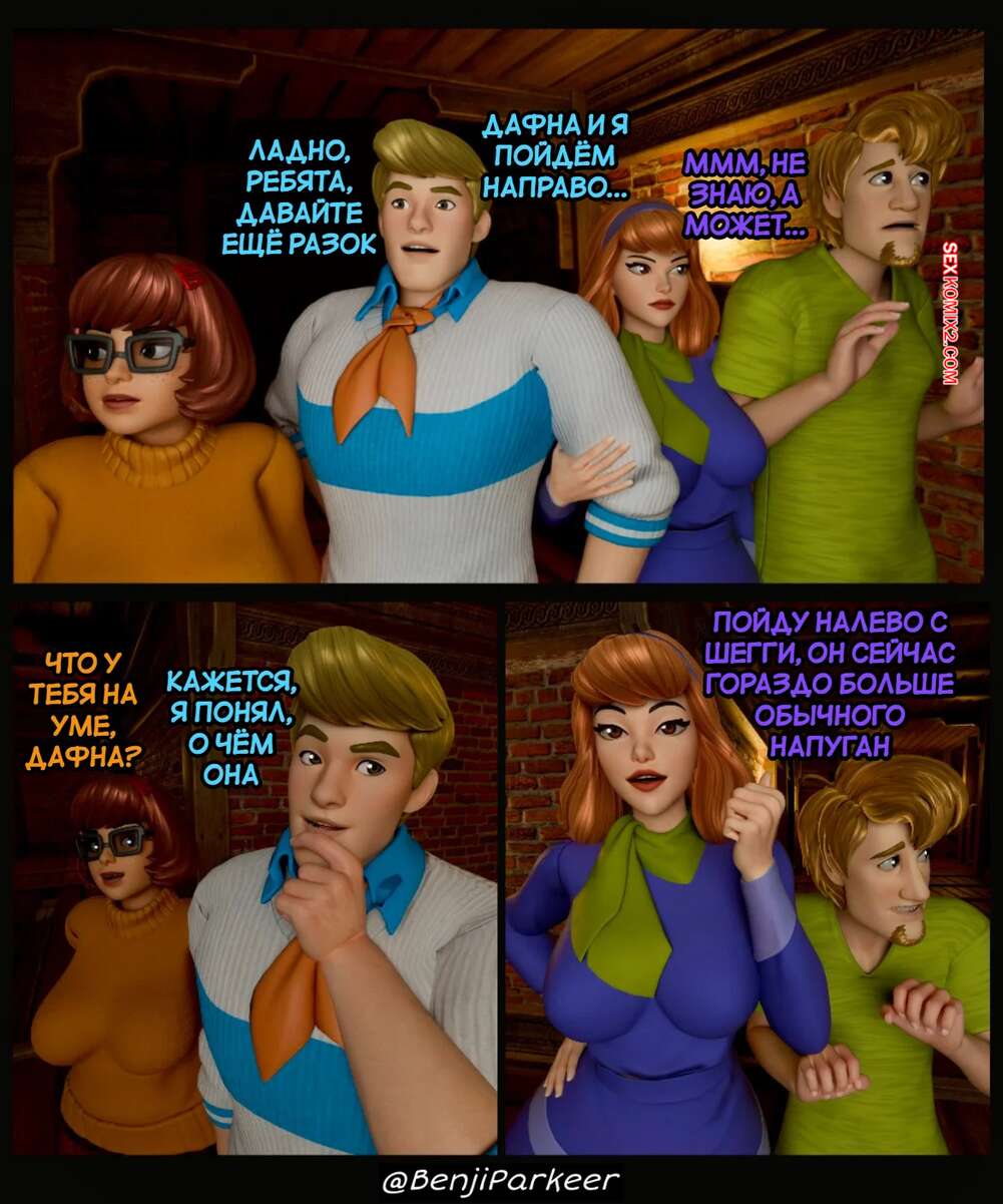 Порно комикс Скуби Ду. Необычный поиск. Una BUSQUEDA Diferente. BenjiParkeer. Во время задания Дафна и Шэгги остались наедине и решили пошалить. Они стали трахаться, а когда Фред и Велма их спалили, они решили присоединиться к друзьям и устроить групповуху.