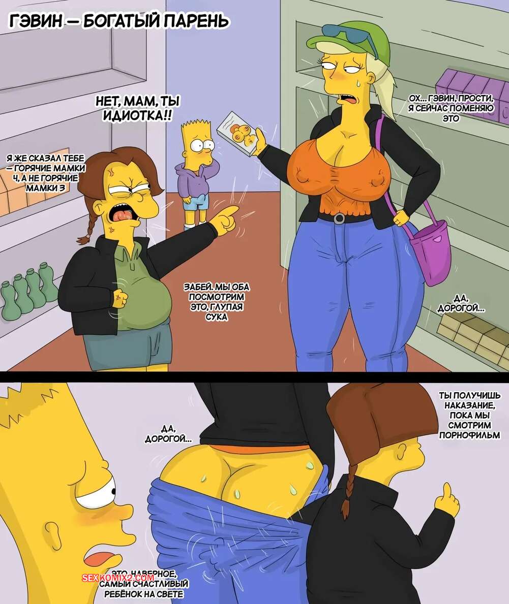 Порно комикс Симпсоны. Гэвин, богатый парень. Gavin The Rich Kid. Marecattus. Молодой мерзкий парень решил поднять бабла на своей горячей мамке. Барт платит ему хорошую сумму денег и милфа сосет его хуй, после чего дает выебать свою пизду.