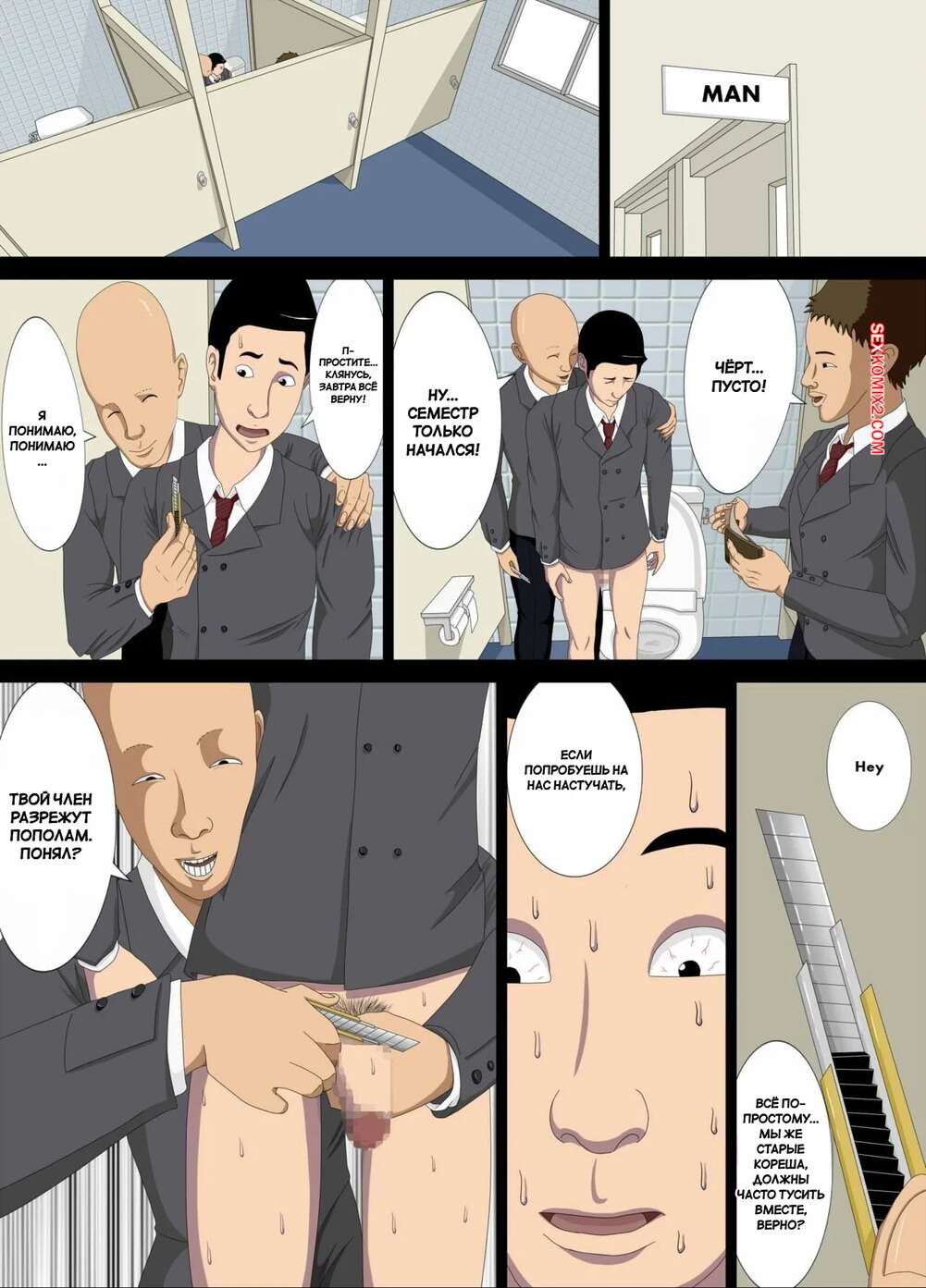 Порно комикс Ночной кошмар. Часть 1. Nightmare. Minazuki Mikka Горячая брюнетка пришла на учебу, где до нее стали домогаться двое парней. Они уединились с девушкой в туалете и стали ее ласкать, после чего выебали ее во все дырочки.