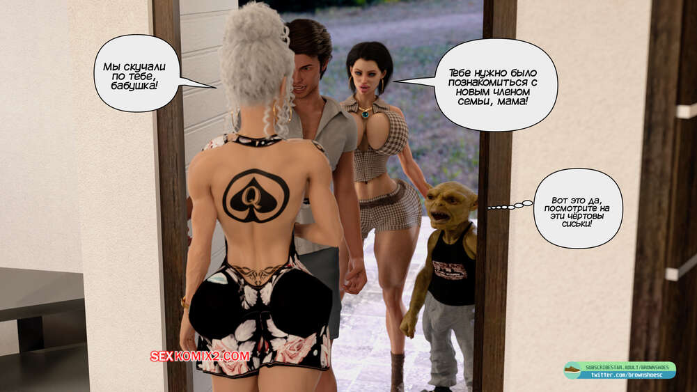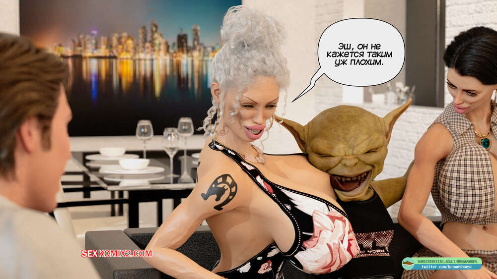 Порно комикс Гнездо гоблинов. Часть 7 и 8. Goblins Nest. Brown Shoes Оливия с Эшем и Зоку отправилась в гости к своей матери. Там она продолжает трахаться с гоблином, а также он не упускает возможность соблазнить аппетитную блондинку милфу.