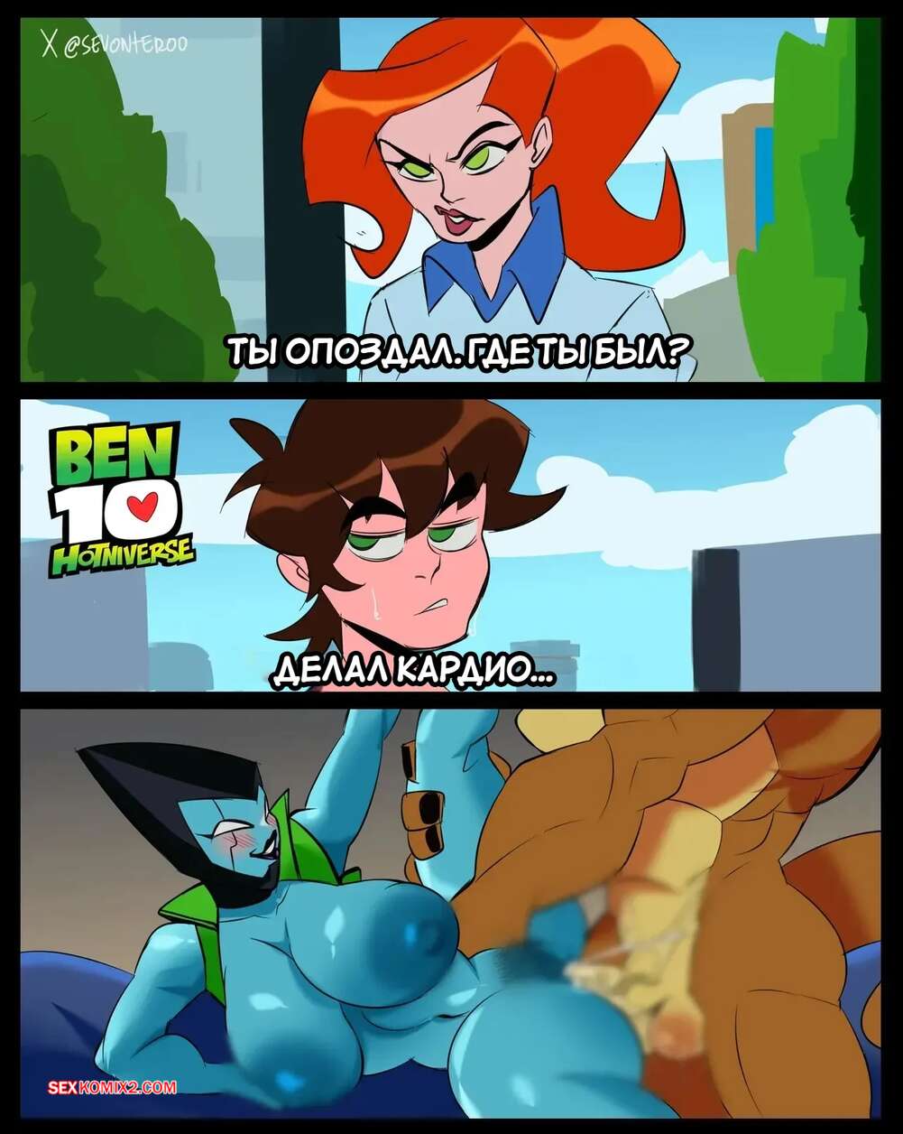 Порно комикс Гвен против Силача. Бен 10.