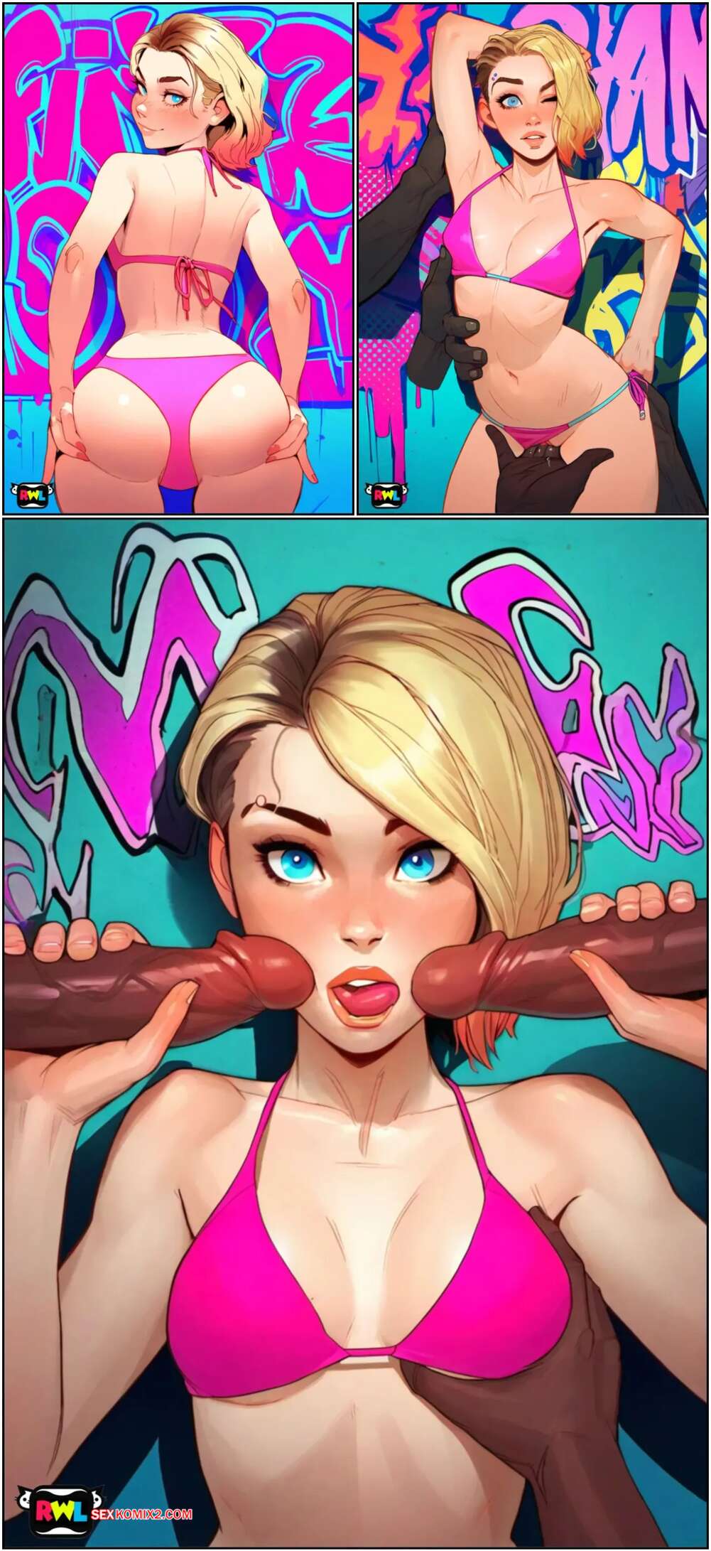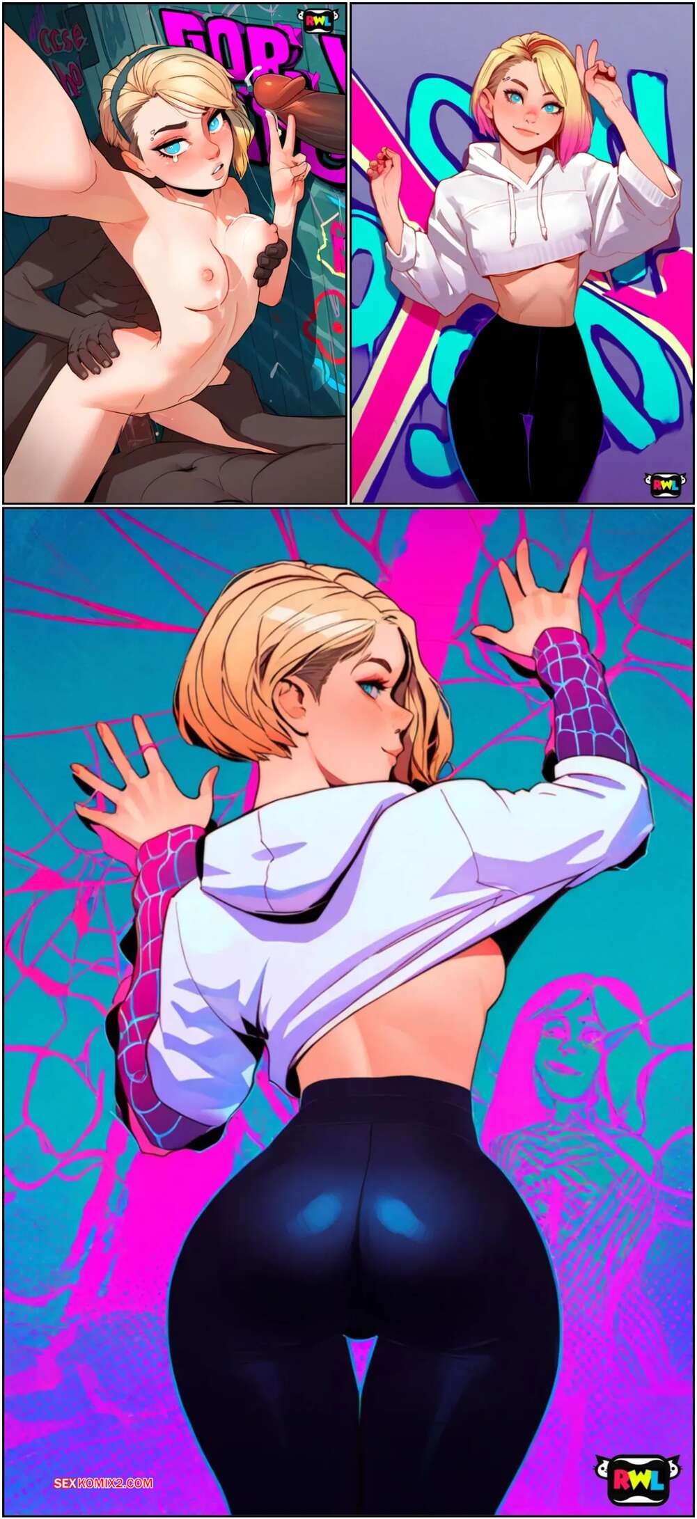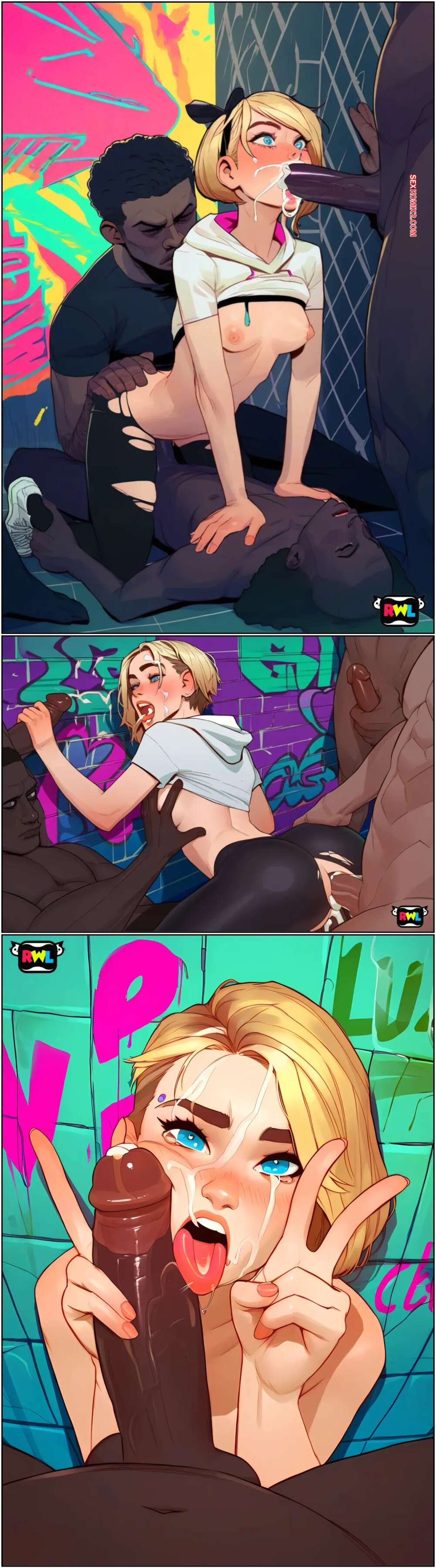 Порно комикс Into The Waifu Verse. RWL Подружки Человека Паука очень развратные и любящие секс. Они позируют перед своими дружками и вызывают у них каменные стояки, после чего раздвигают ножки и дают себя оттрахать.
