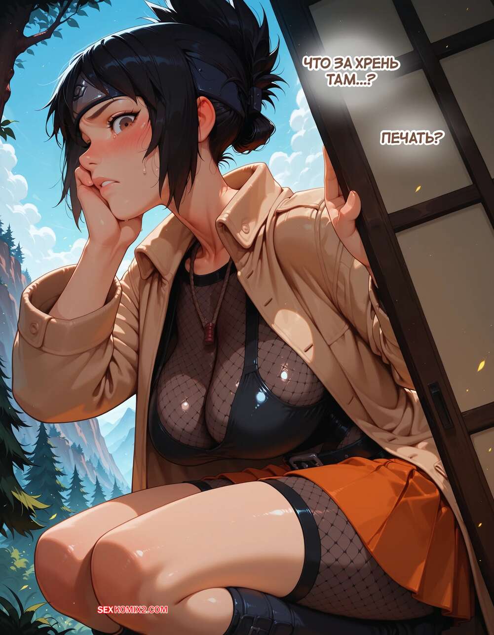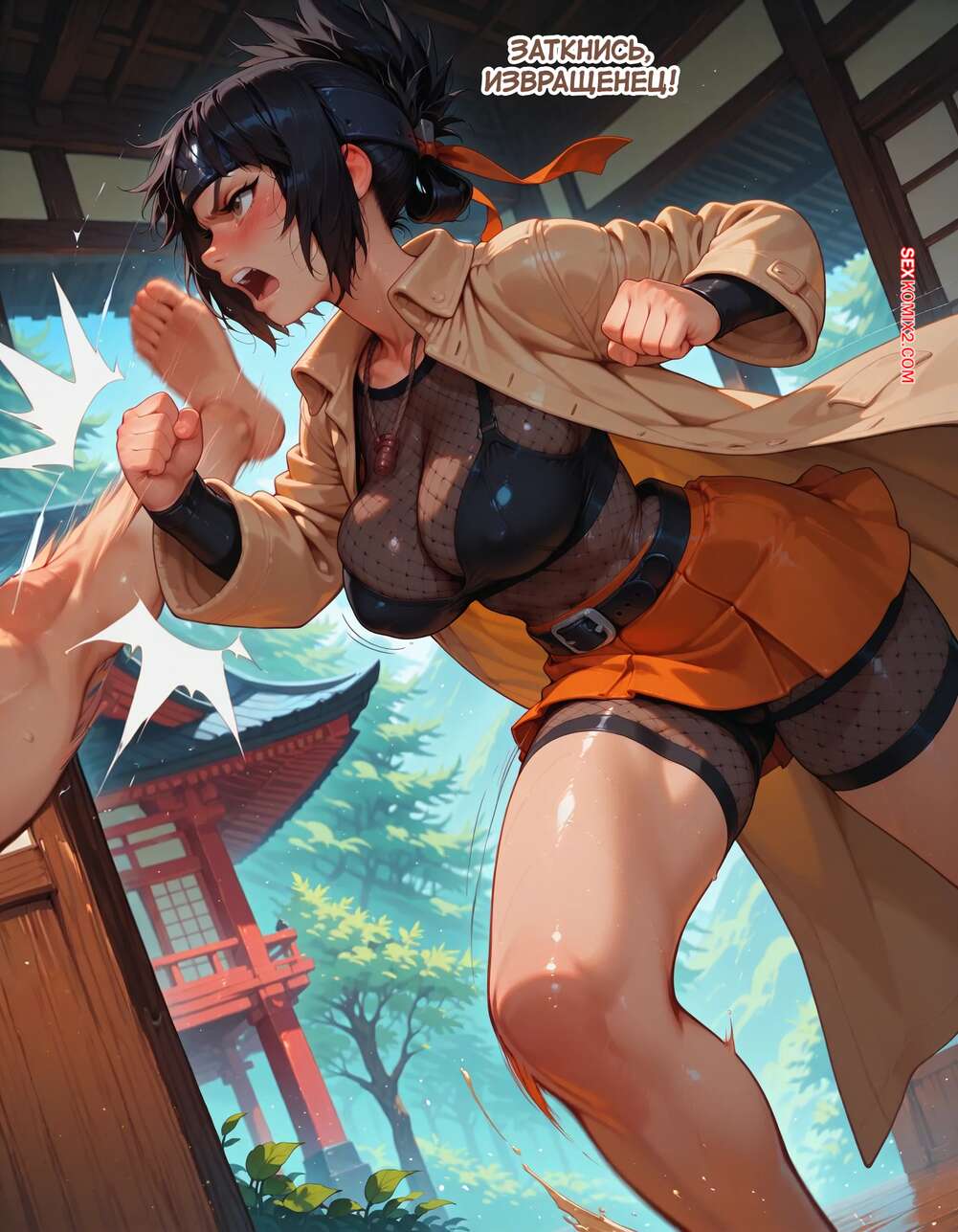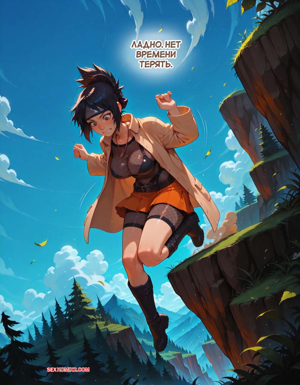 Порно комикс Наруто. Деревня Эрос. Часть 6. The Village of Eros. Sax Парень трахал раком рыжую красотку, но их прервала брюнетка, которая вступила с ним в схватку. Он быстро одолел сучку и поставил ее на колени, чтобы она ему отсосала.