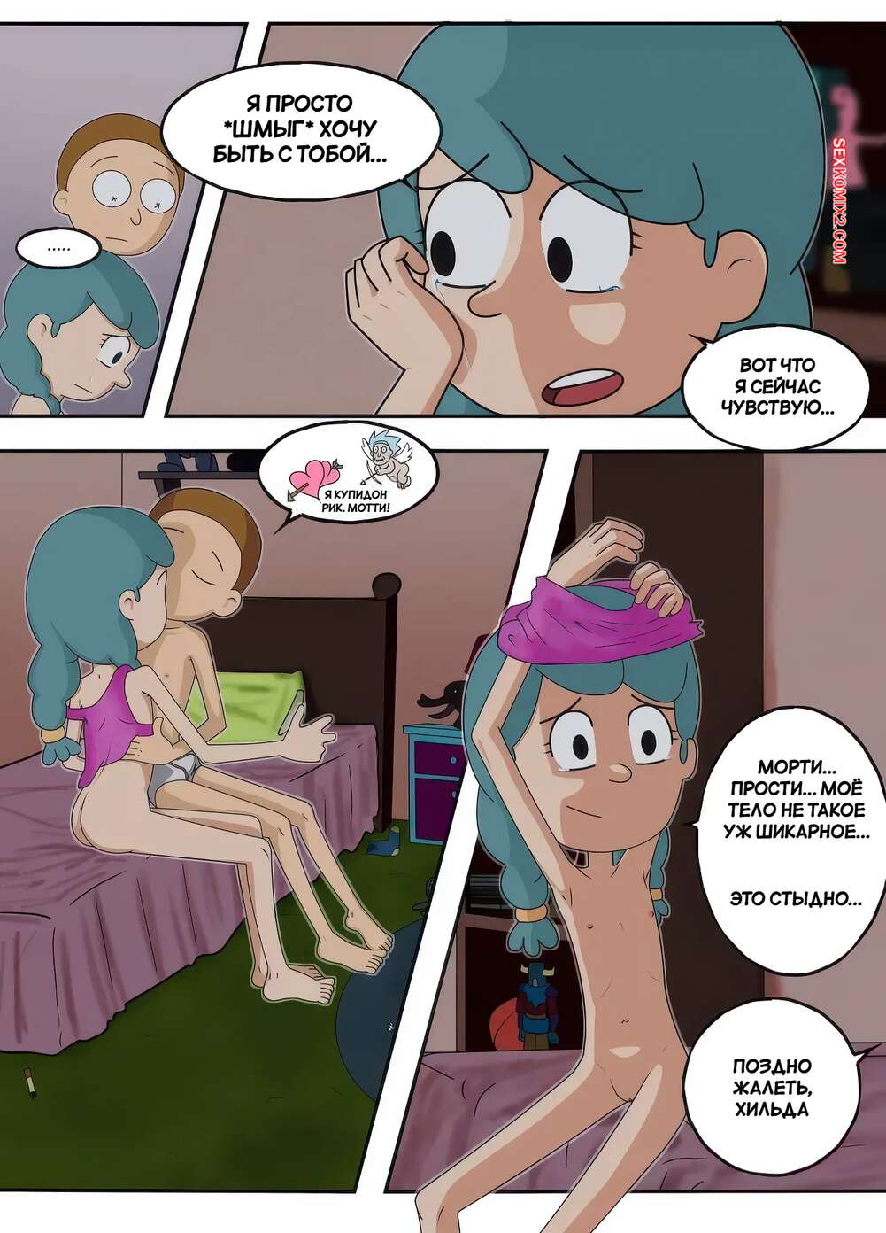 Порно комикс Рик и Морти. Пробраться в комнату Морти ночью. RickMorty. GKG