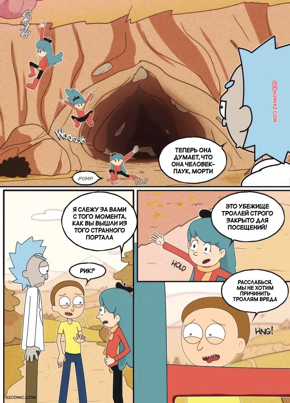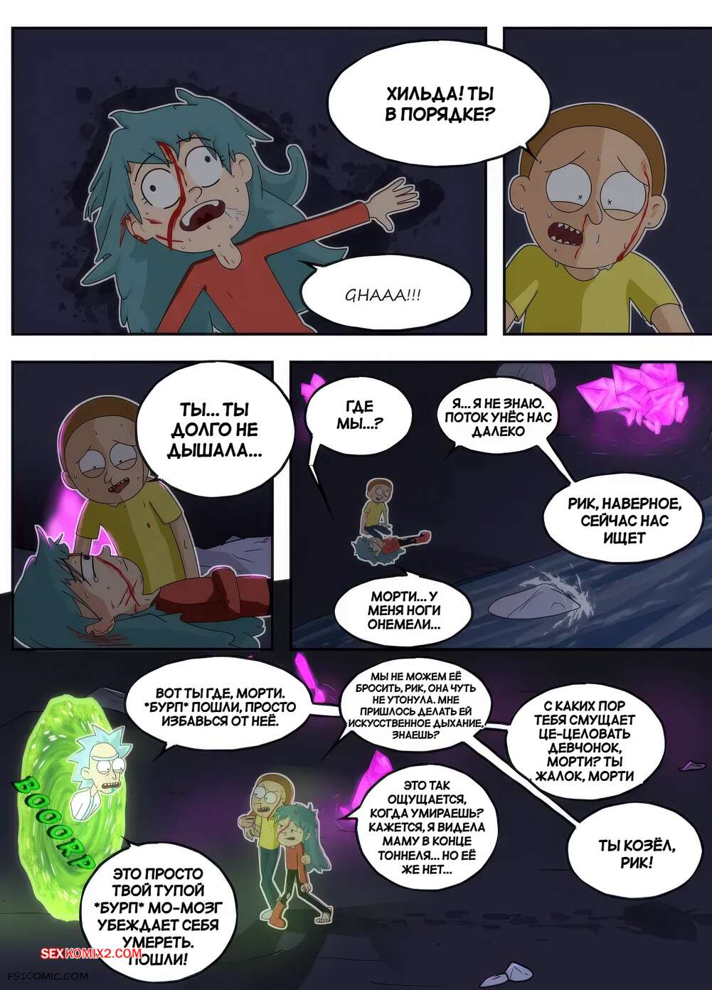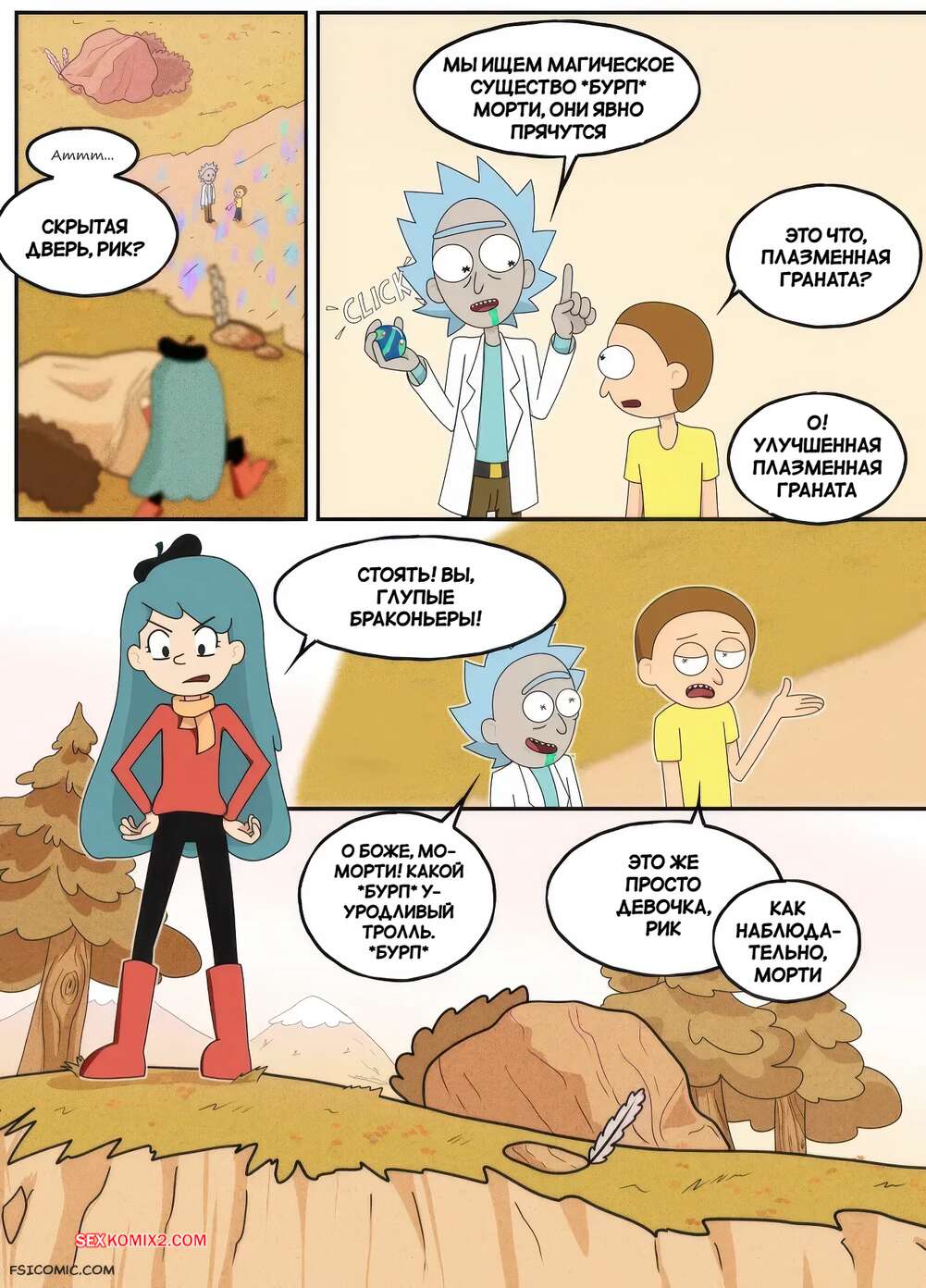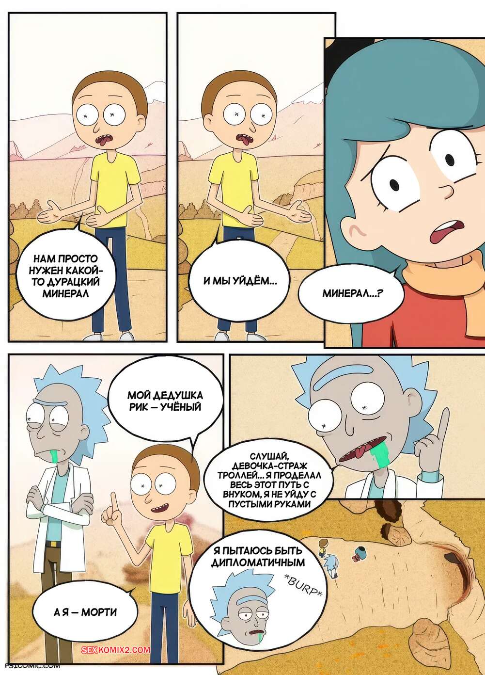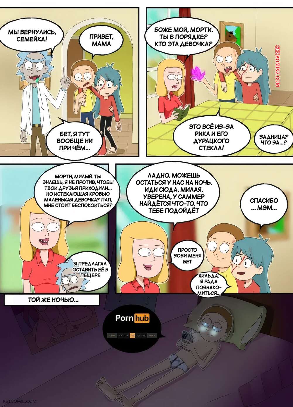 Порно комикс Рик и Морти. В мир секса. Часть 1. Into the Sexverse. Bruto McRugen. В неизвестном для себя мире Морти познакомился с девушкой и привел ее в свой мир. Ночью девушка навестила парня в его комнате и они стали целоваться, после чего впервые занялись сексом.
