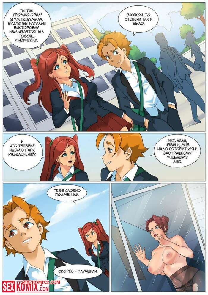 Порно комикс Непреодолимая тяга. Texic Парень спалил свою училку за мастурбацией во время урока и остался после занятия, чтобы поговорить с ней об этом. Красотка больше не могла сдерживать свою похоть и оголила сиськи перед учеником, после чего позволила ему себя оттрахать.