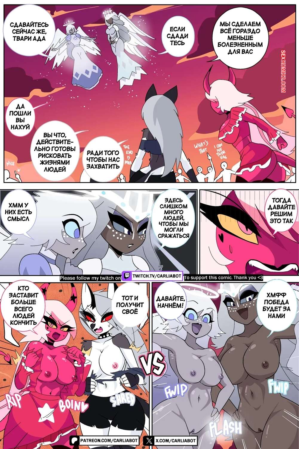 Порно комикс Адский босс. Луна и Веросика против Эмили и Серы. Carliabot. Горячие красотки решили устроить сексуальное соревнование, чтобы выяснить кто из них лучше. Девушки разделись перед парнями и стали сосать их большие члены, чтобы скорее заставить их кончить.