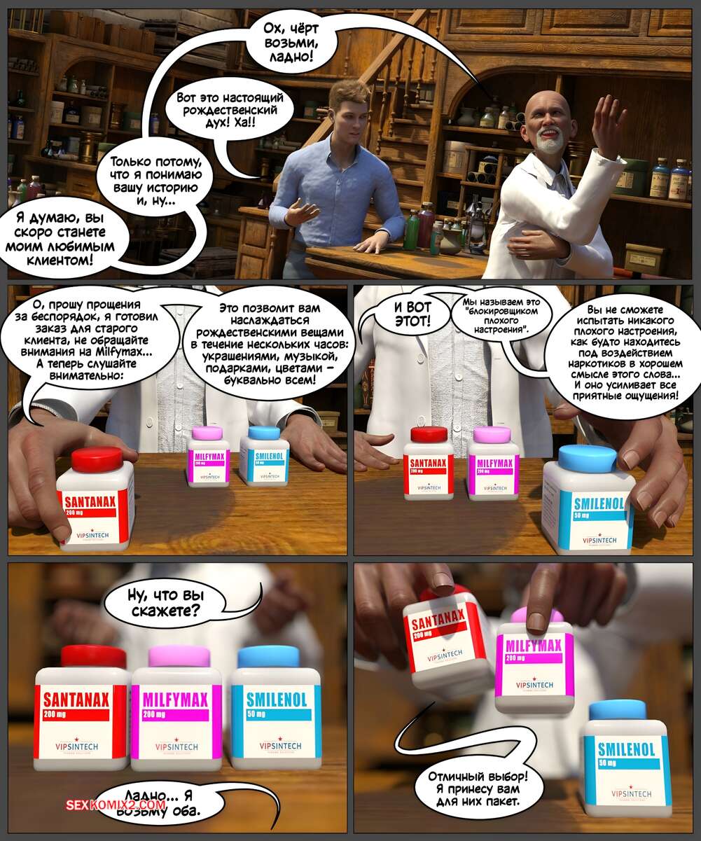 Порно комикс The Docs Prescription. Aunties Relaxing Aid. VipCaptions В канун рождества тело парня стало менять и он превратился в аппетитную милфу с пышными формами. К ней стал подкатывать дружок парня, желающий возбудить красотку и хорошенько ее трахнуть.