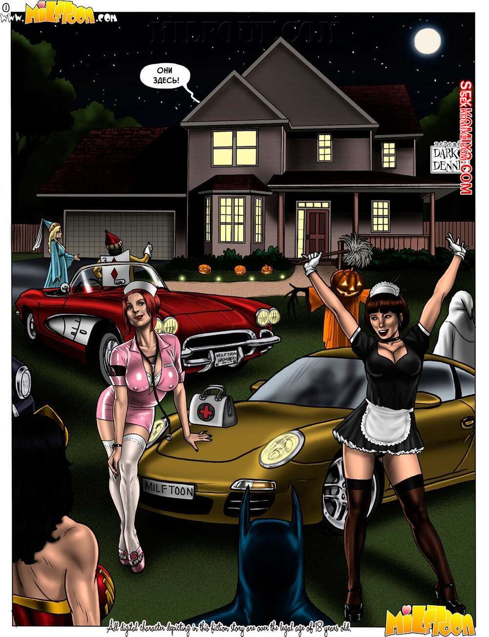 Порно комикс Хэллоуин. Halloween. Milftoon Мужик лишился работы и его горячая жена устроила вечеринку в честь Хэллоуина, чтобы помочь ему ее вернуться. На тусовку пришли подруги красотки, которые перебрали с алкоголем и теперь жаждут секса.
