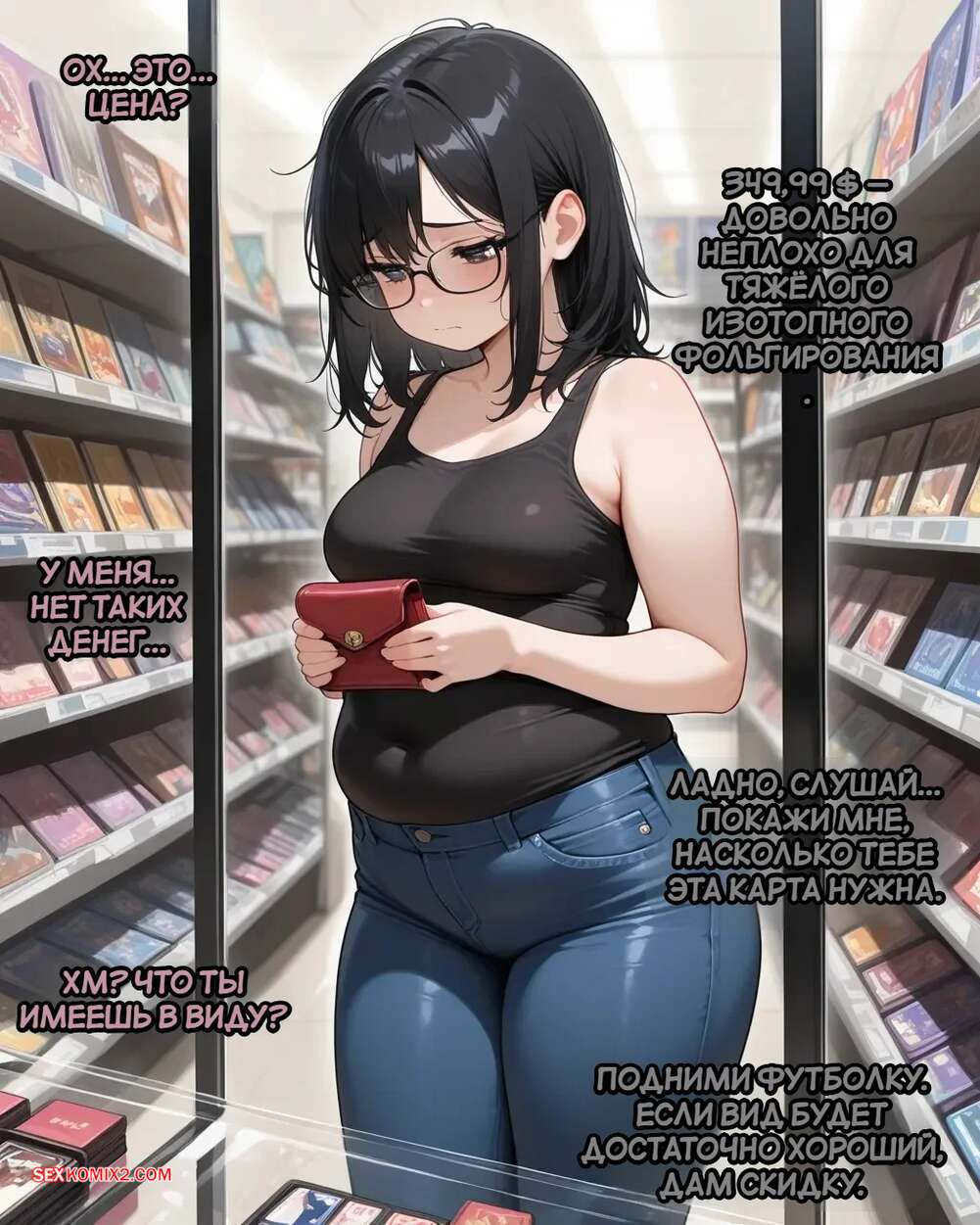 Порно комикс Магазин карт. Card Shop. BrokenBismuth. Горячая брюнетка хочет получить редкую карточку и готова на все ради этого. Она встала на колени перед парнем и взяла в ротик его член, после чего раздвинула ножки и дала себя выебать.