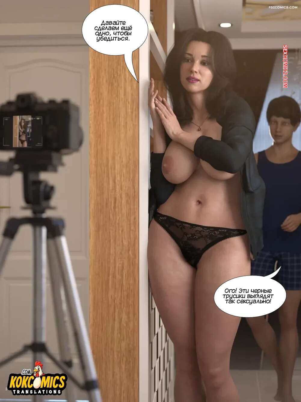 Порно комикс Фотосессия с мамой. Photo Session With Mom. Nenet3DX Горячая милфа надела сексуальное белье и стала позировать перед камерой. Ее застал за этим делом сын и пристроился сзади к мамочке, желая поскорее ее оттрахать.
