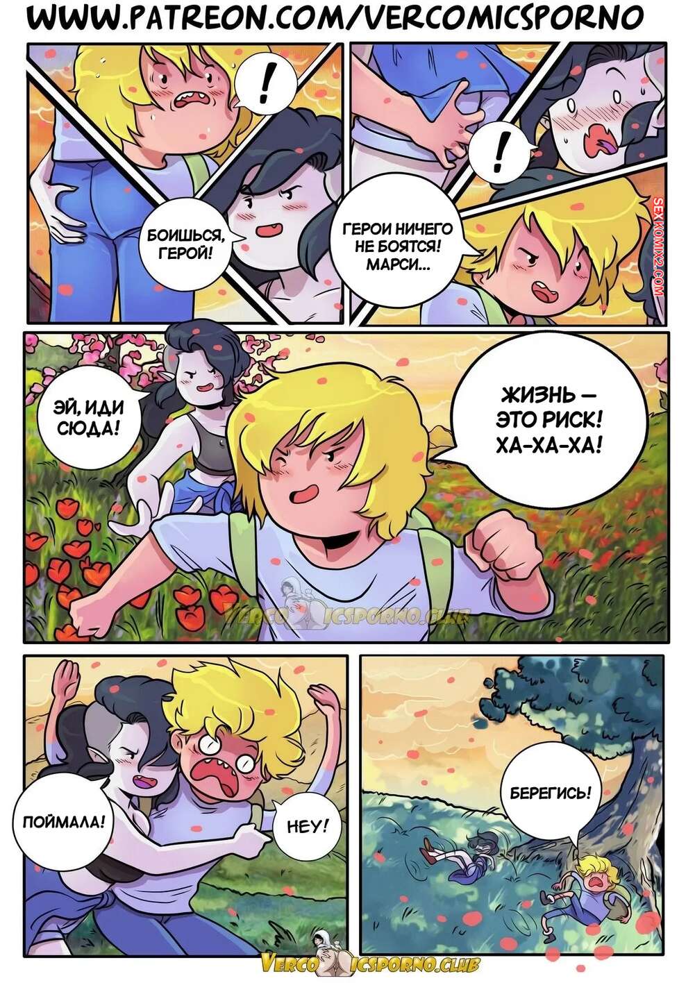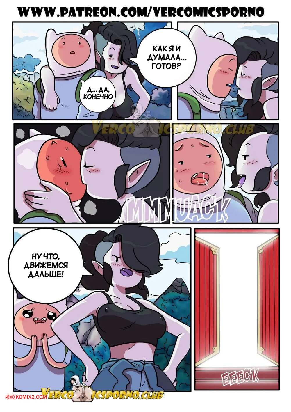 Порно комикс Adventure Time. Ты пойдешь со мной на свидание. Ero Mantic, Ferrand85. Аппетитная брюнетка заигрыват с Финном и предлагает ему повеселиться. Красотка вызывает у парня стояк и берет в ротик его член, после чего раздвигает ножки и дает себя хорошенько оттрахать.