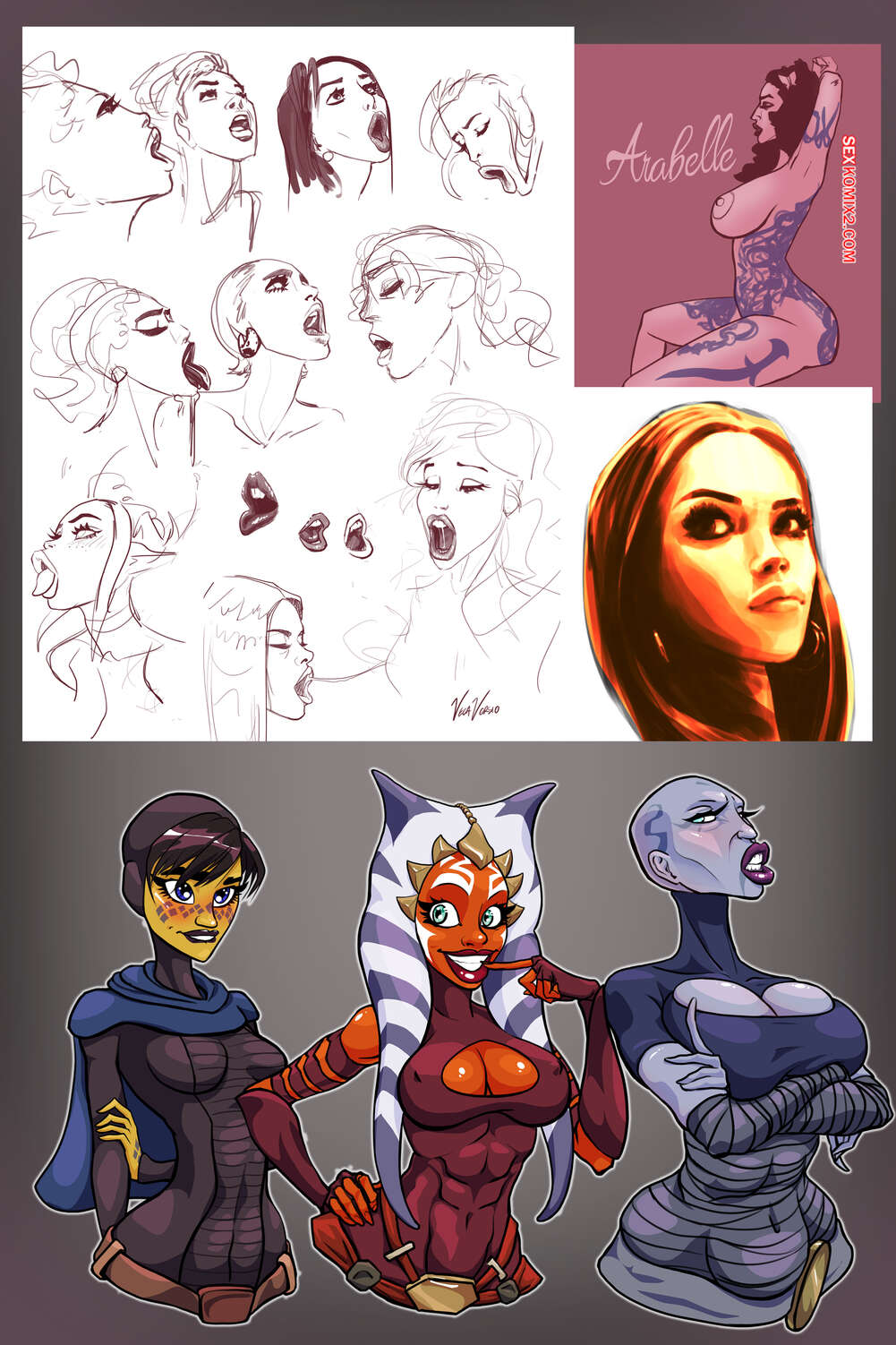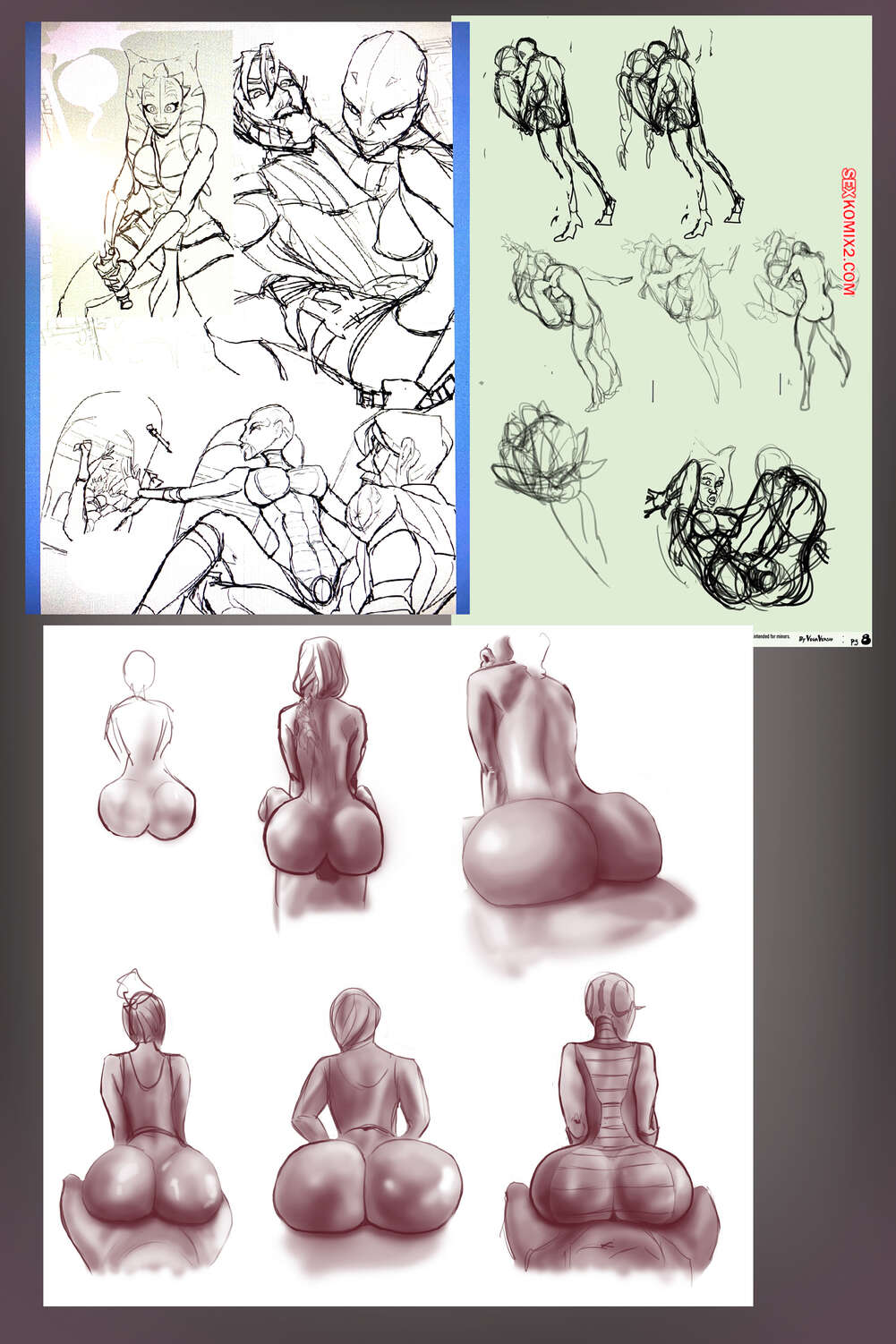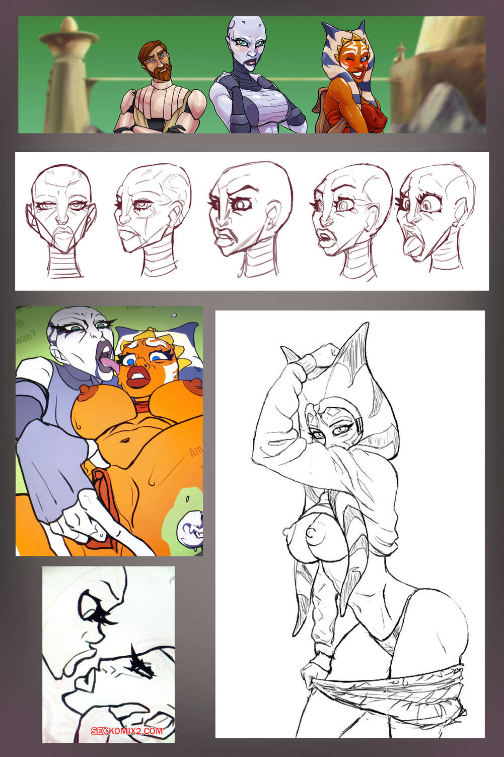 Порно комикс Звездные войны. Две настройки. Эпизод 5. Two Tweaks. VegaVersio Асока Тано не может сдерживать свою похоть и решает повеселиться со злодейкой. Она поставила ее на колени и дала отсосать свой большой хуй, после чего выебала ее пизду.