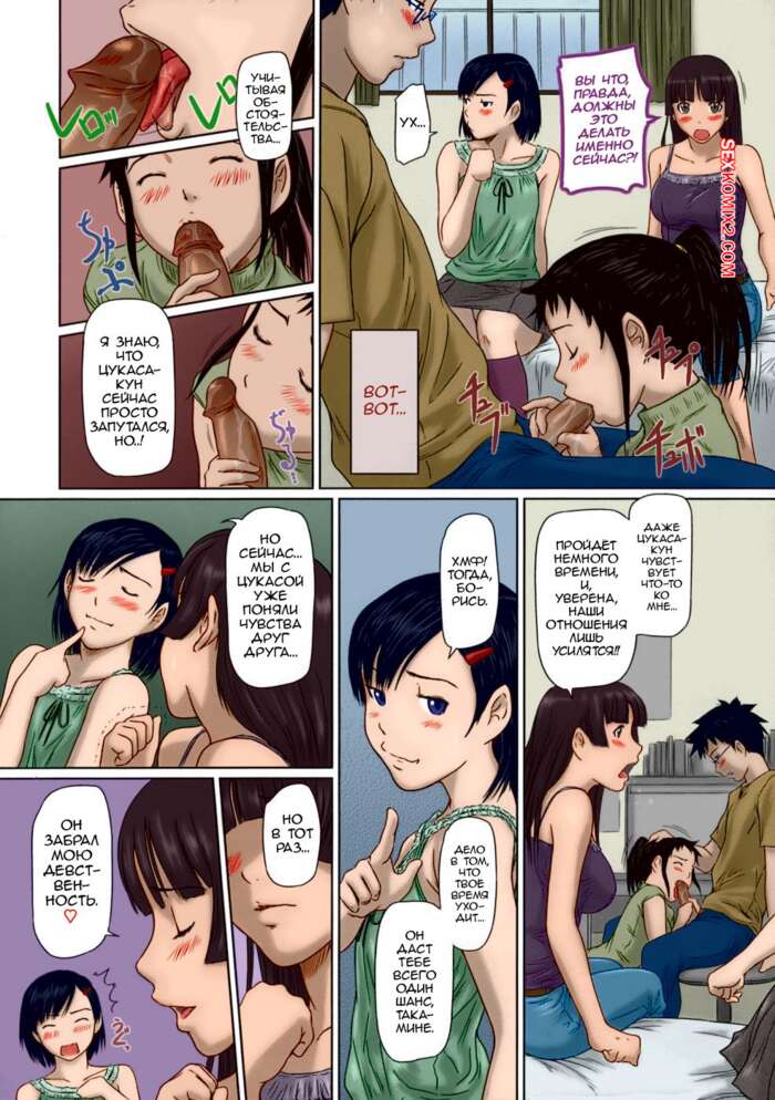 Порно комикс Сёстры Гиригири. Часть 4. Giri Giri Sisters. Kisaragi Gunma Горячие брюнетки заигрывают со своим дружком, желая с ним пошалить. Красотки раздеваются и сосут его большой хуй, после чего раздвигают ножки и позволяют трахнуть себя.