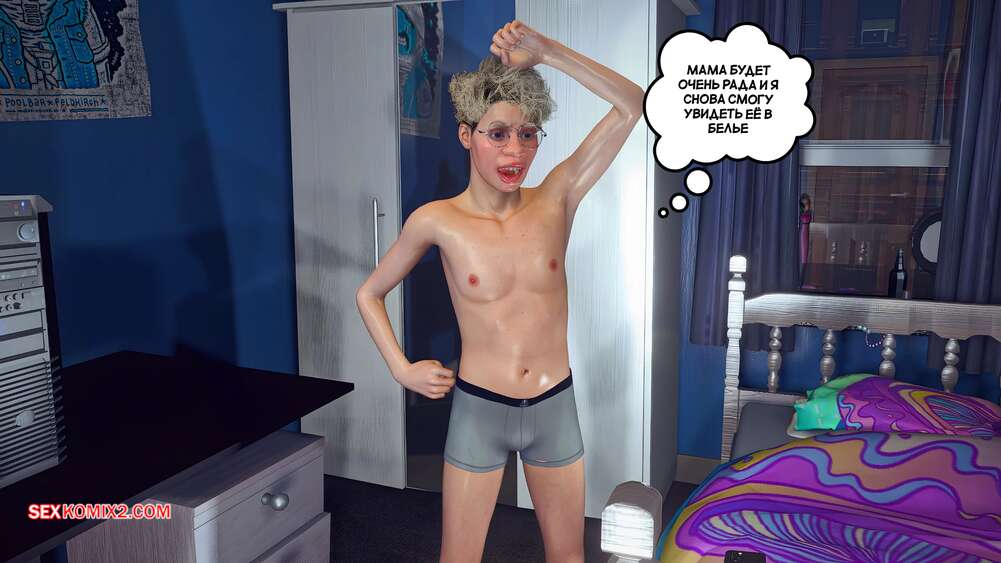 Порно комикс Помогая маме. Часть 3. Helping to mom. Bartolito3d for sexkomix2.com Парнишка позвал свою горячую мамку в комнату, чтобы снять новый контент. Красотка пришла в сексуальном купальнице и очень стесняется, поэтому сын дает ей выпить, чтобы расслабиться.
