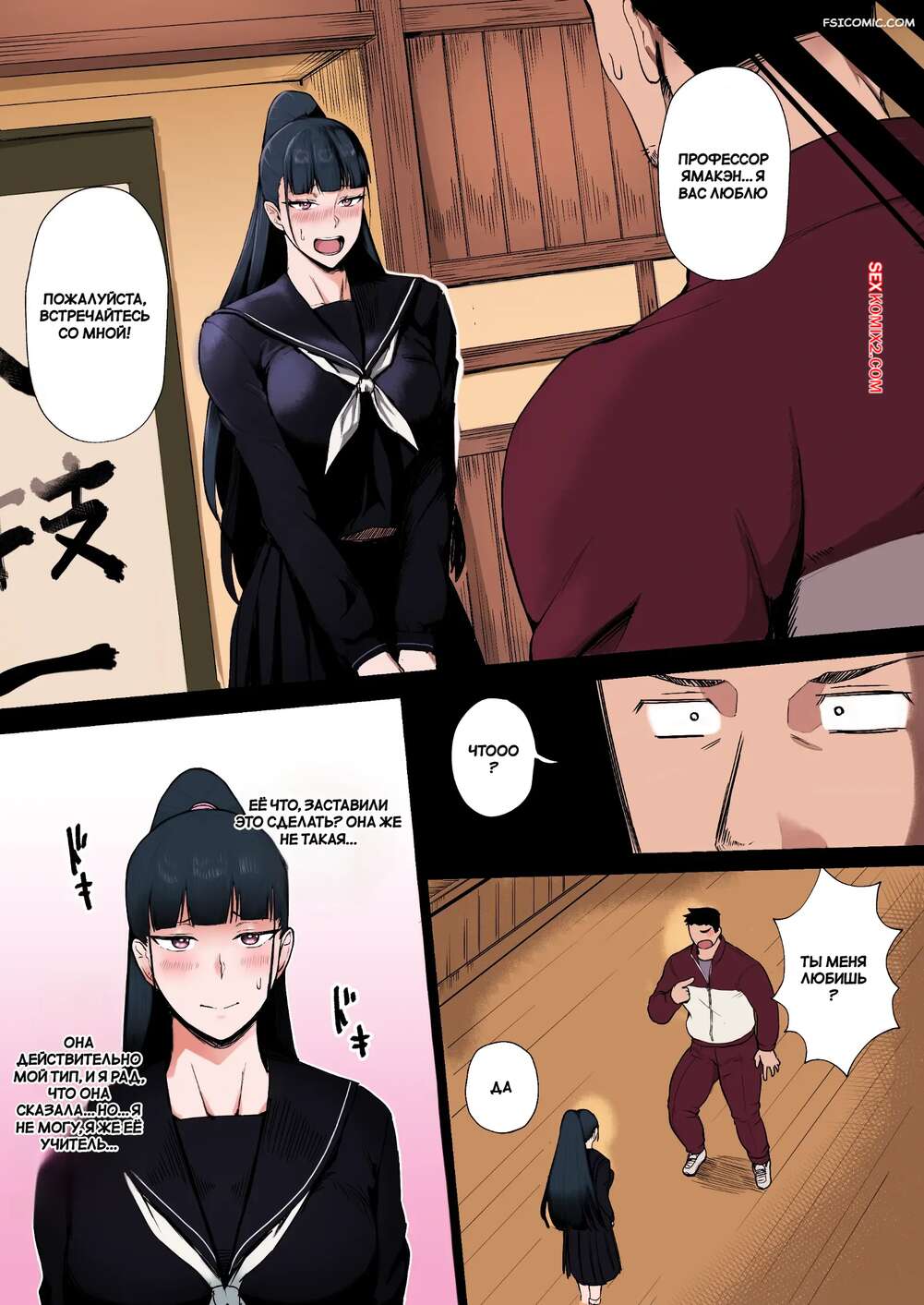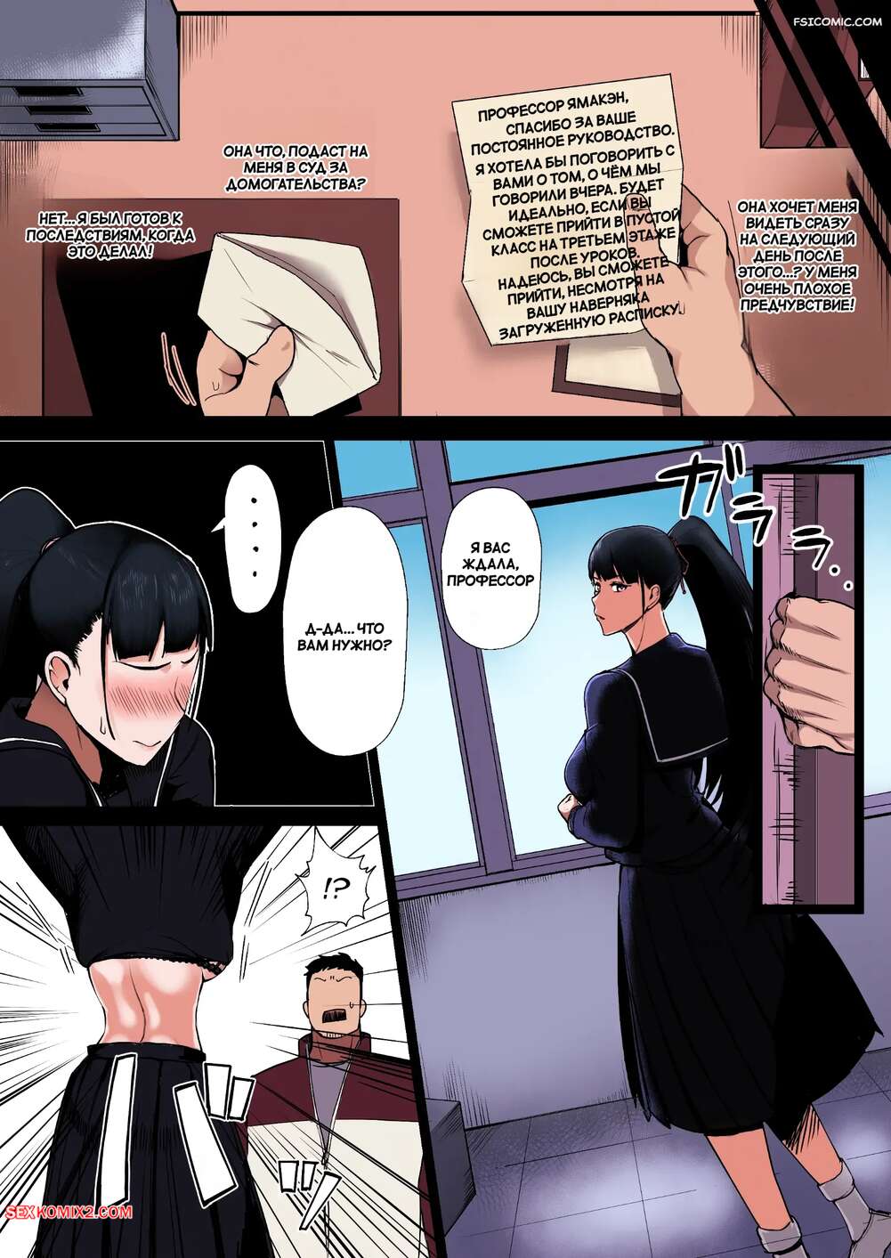 Порно комикс Образцовая ученика хочет стать шлюшкой учителя. Doushoku Горячая брюнетка без ума от своего учителя в школе и решает его соблазнить. Красотка надела сексуальное белье и стала позировать перед мужиком, возбуждая его. Он поставил сучку на колени и дал ей член в рот, после чего выебал ее киску.
