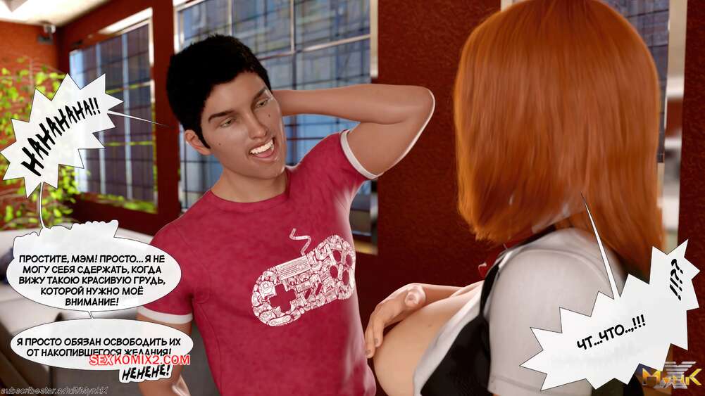 Порно комикс Кафе Фоли. Часть 12. Cafe Folies. Mynkx Парень заигрывает с рыжей красоткой, желая ее соблазнить и повеселиться. Он оголил ее сиськи и стал их сосать, желая скорее загнать в нее твердый член, но все пошло не по его планам.