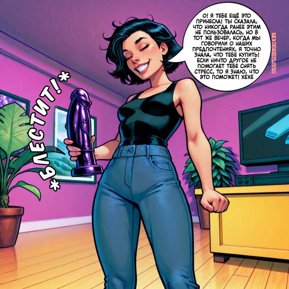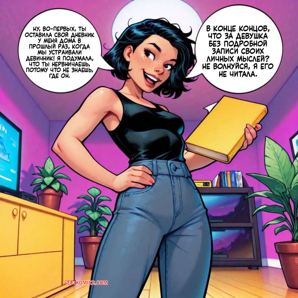 Порно комикс Магия сучек. Часть 2. Bitchcraft. Alwaysolder Горячая брюнетка привыкает к своему новому телу. Она постоянно возбуждена и хочет секса, поэтому использует свой члерный дилдо. Ей этого мало, поэтому она позволяет парню себя выебать.