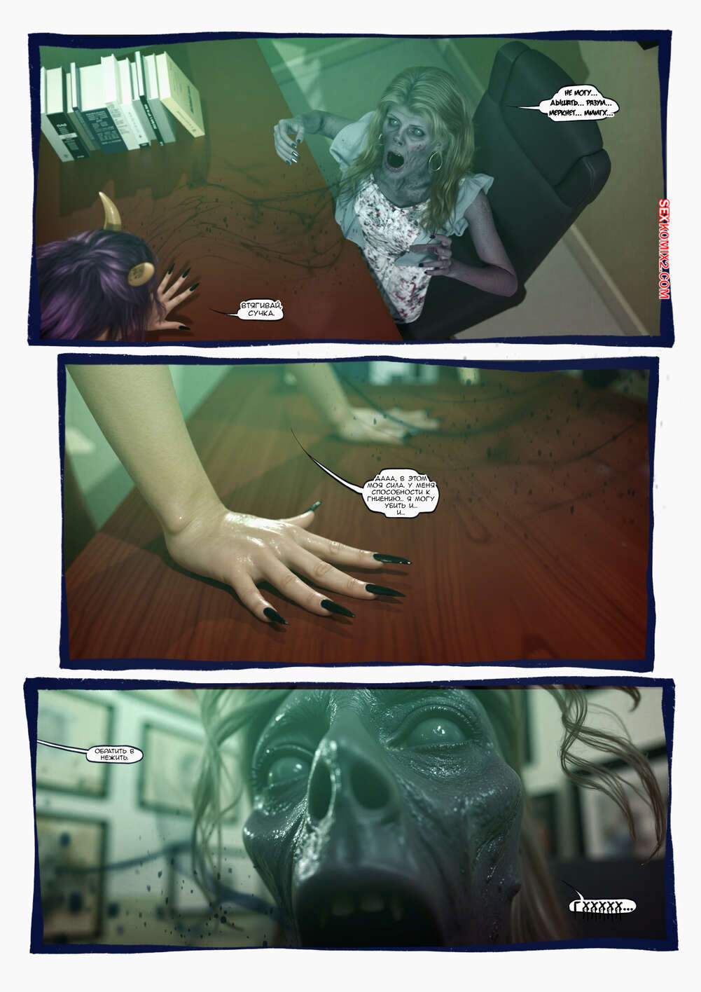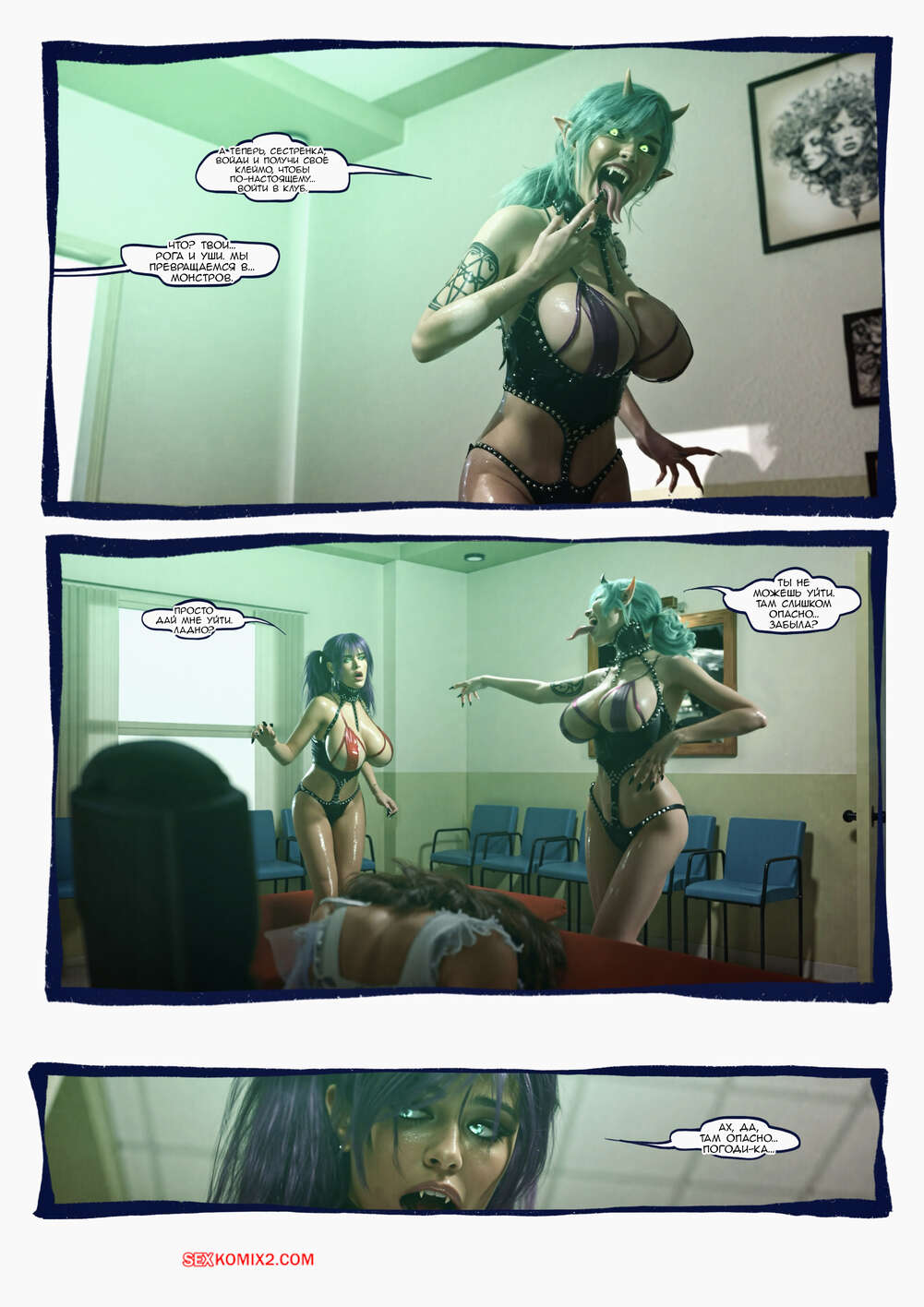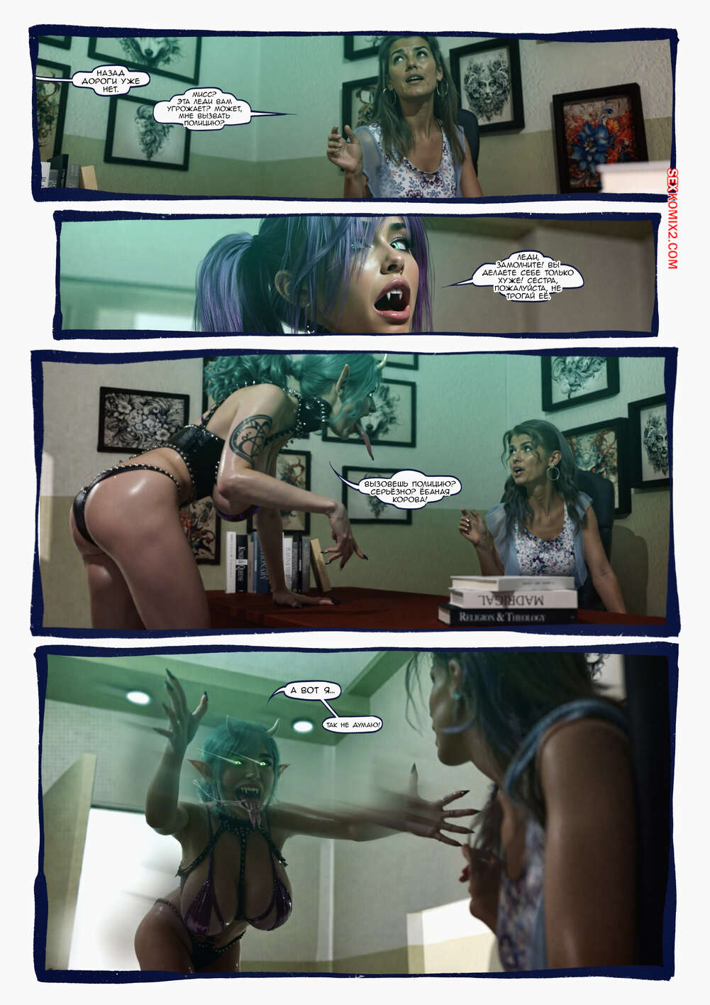 Порно комикс Ад манит. Части 49, 50, 51. Hell Beckons. JacktheMonkey Сексуальные вампирши оказались в кабинете горячей милфы. Они устроили процесс ее превращения, а сами в этот момент стали ласкать друг дружку, получая невероятное удовольствие.