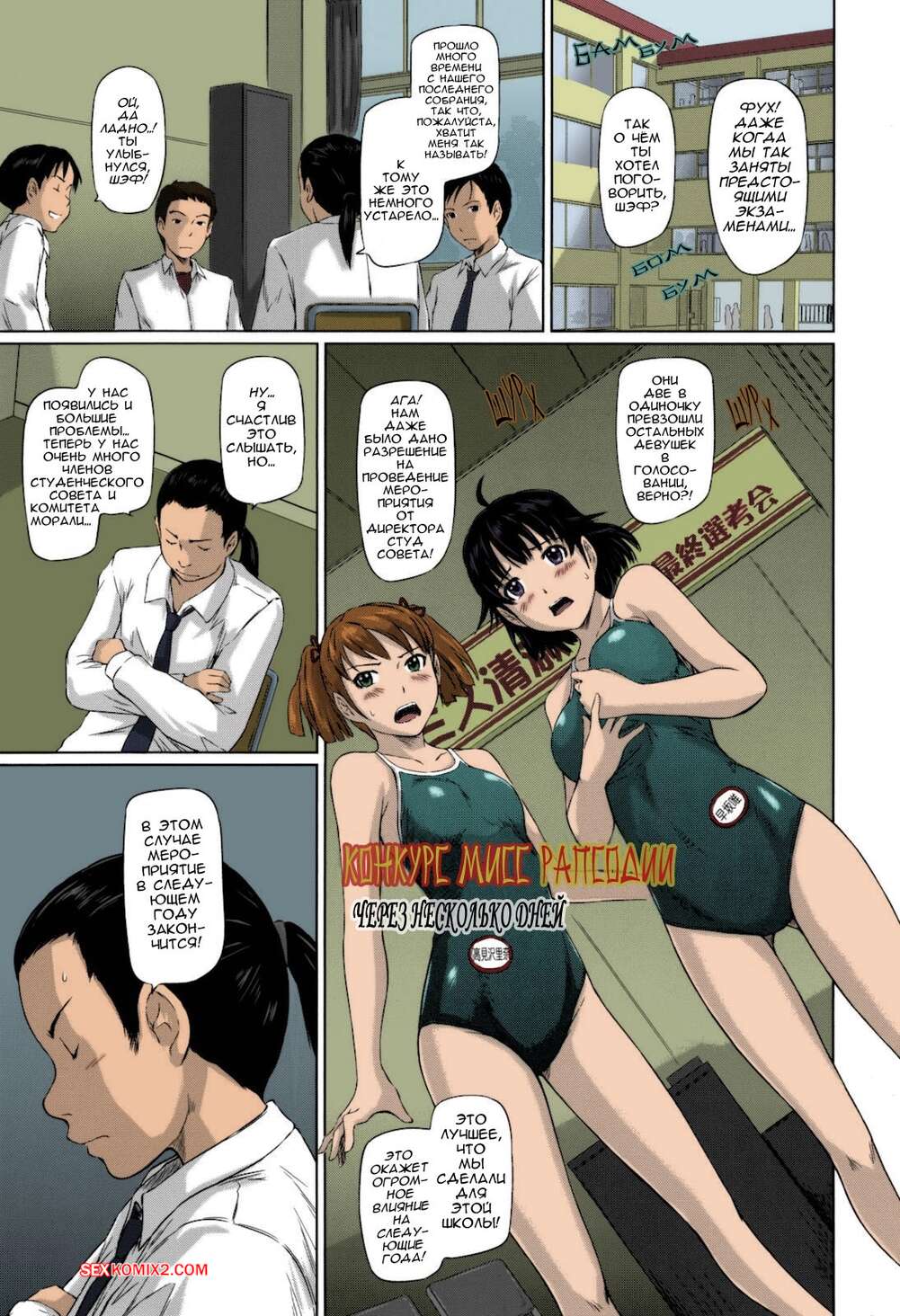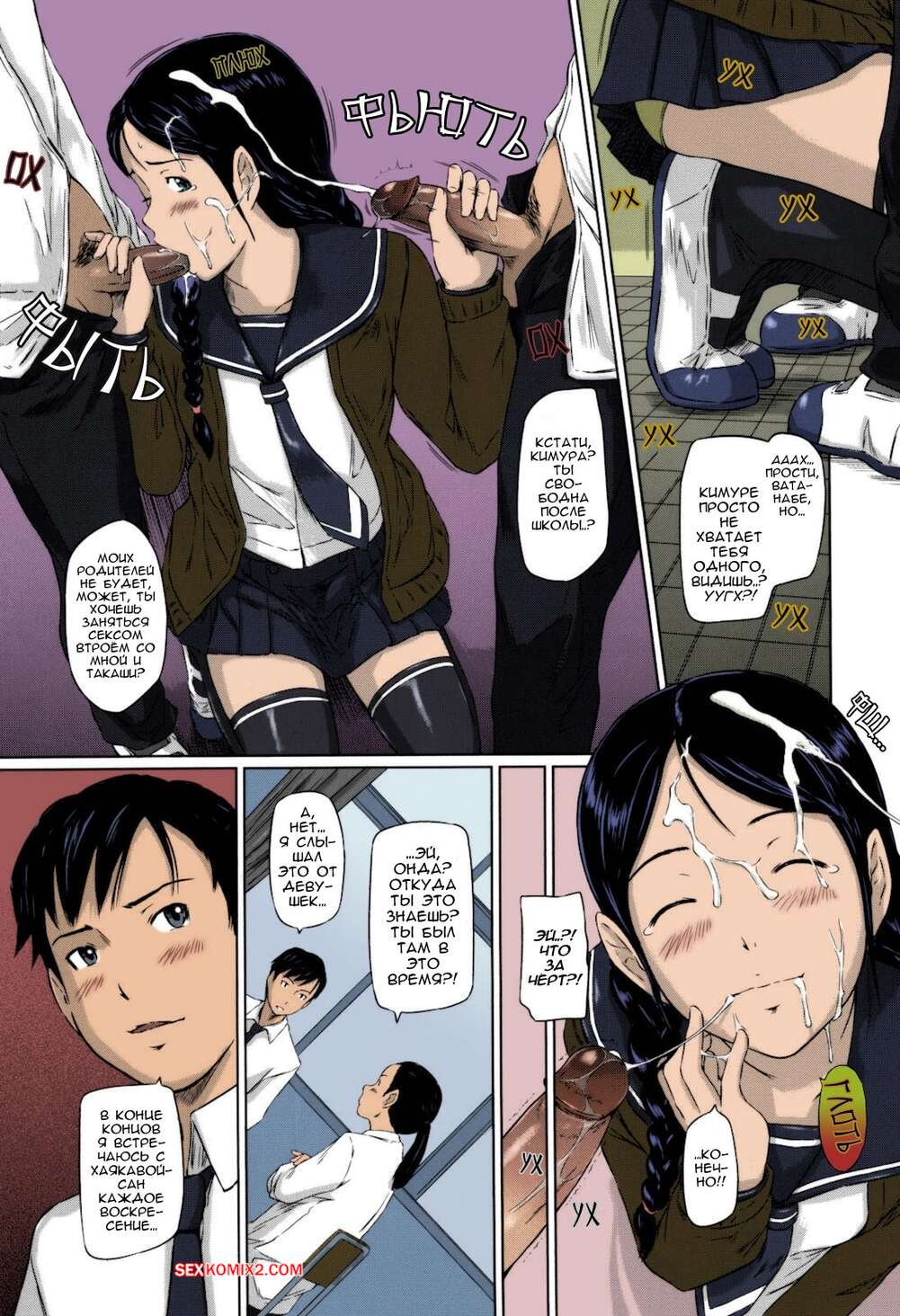 Порно комикс Влюбленные. Часть 7. Sweethearts. Kisaragi Gunma Горячие брюнетки отвелкают парней от урока, желая повеселиться. Они сосут их большие члены, после чего встают раком и дают себя хорошенько выебать, получая невероятное удовольствие.