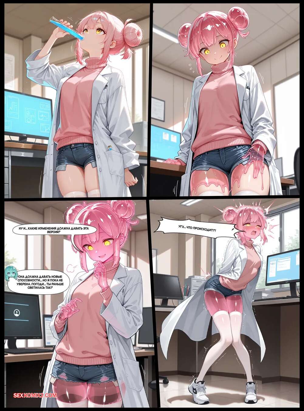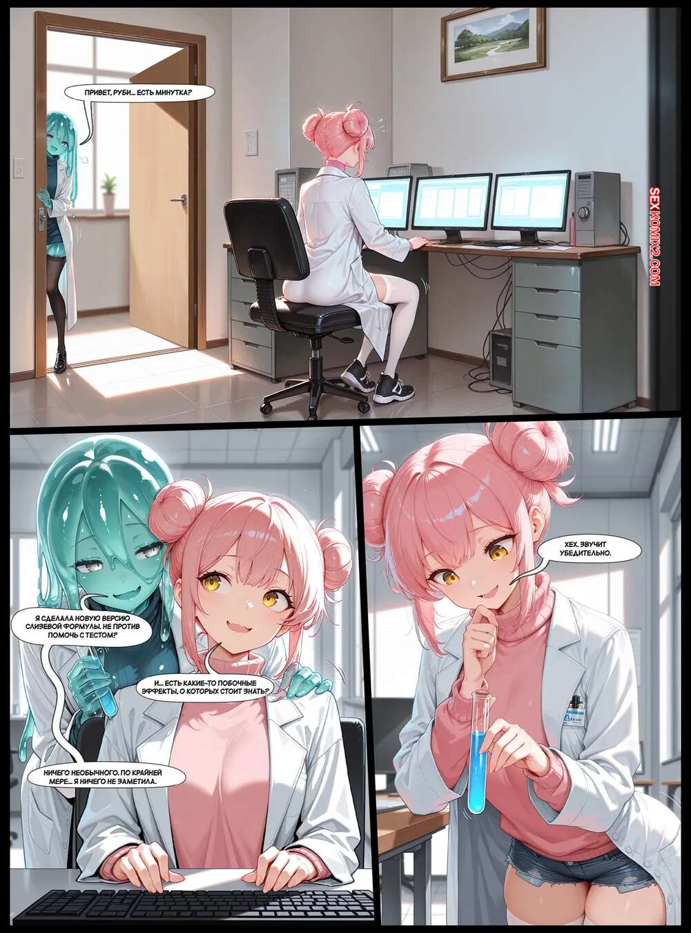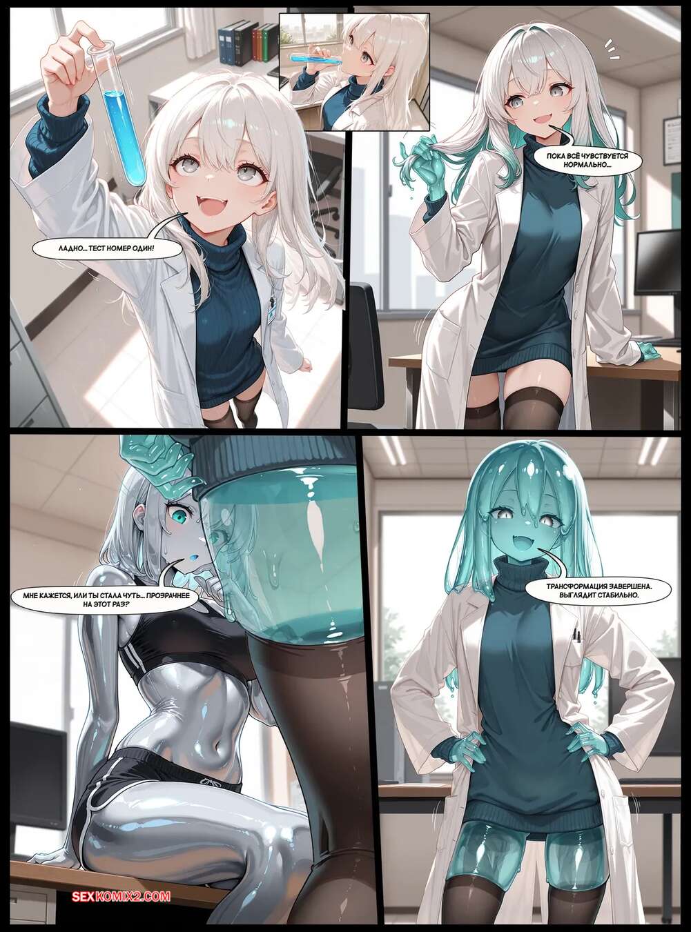 Порно комикс Сказки слизи. Улучшенная формула. Slimy Tales. The Improved Formula. SlimyGalsy. Девушки ученые разработали новую сыворотку и решили попробовать ее в деле. Их тела меняются и формы становятся больше, а сами красотки превращаются в слизь.