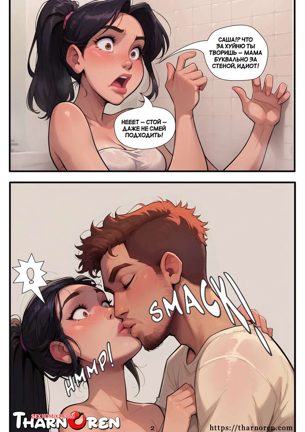 Порно комикс После вызова. After The Dare. Tharnoren. Брюнеточка с утра пошла в ванну почистить зубы, куда к ней наведался Саша. Он хочет секса, поэтому достал член перед сестренкой, чтобы она встала на колени и отсосала ему.