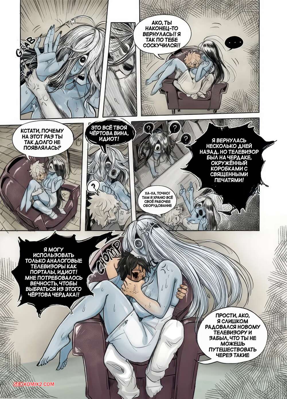 Порно комикс Восхитительное проклятие. В цвете. Delightful Curse. InsoUwu. Горячая брюнетка монстр вылезла из телевизора в комнате парня и он не смог устоять перед соблазном. Он взял девушку на руки и понес ее в спальню, где хорошенько ее трахнул.