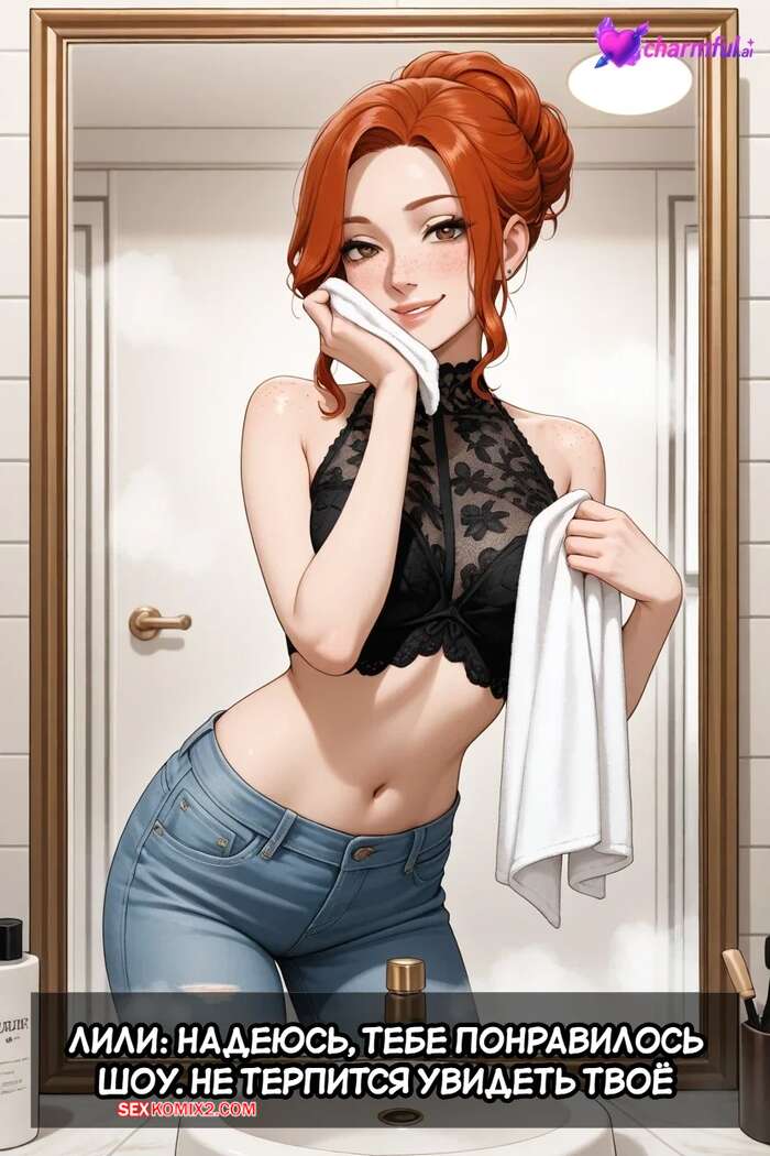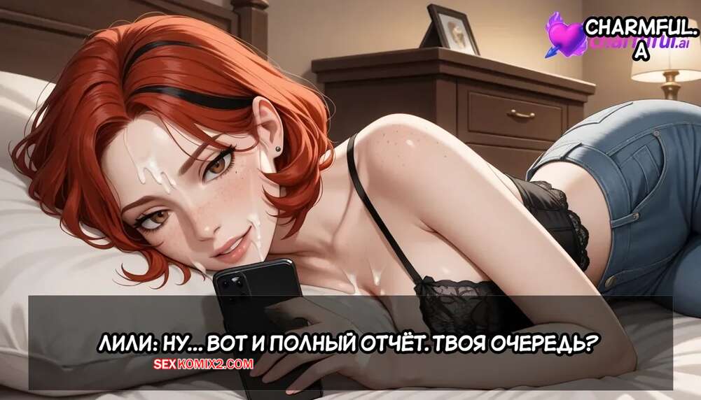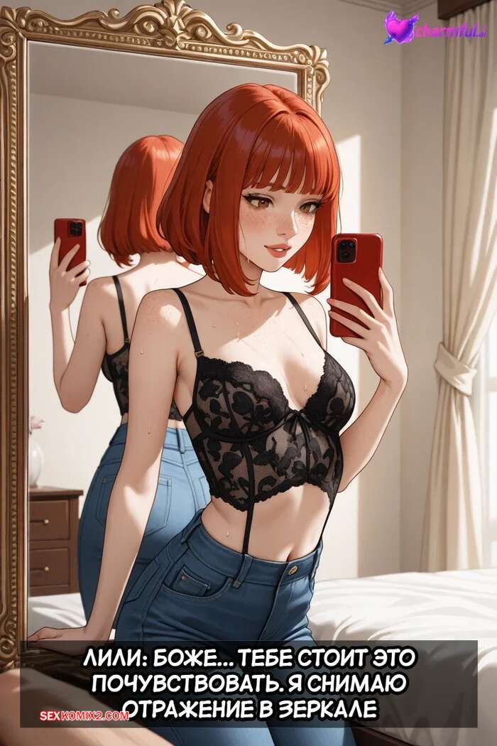Порно комикс Передача Лили. Общее приключение. Lilys Transmission. A Shared Adventure. Charmful. Рыжая красотка Лили очень любит секс. Она заигрывает с парнем и соблазняет их, после чего сосет их большие члены и дает себя хорошенько выебать, снимая все на телефон.