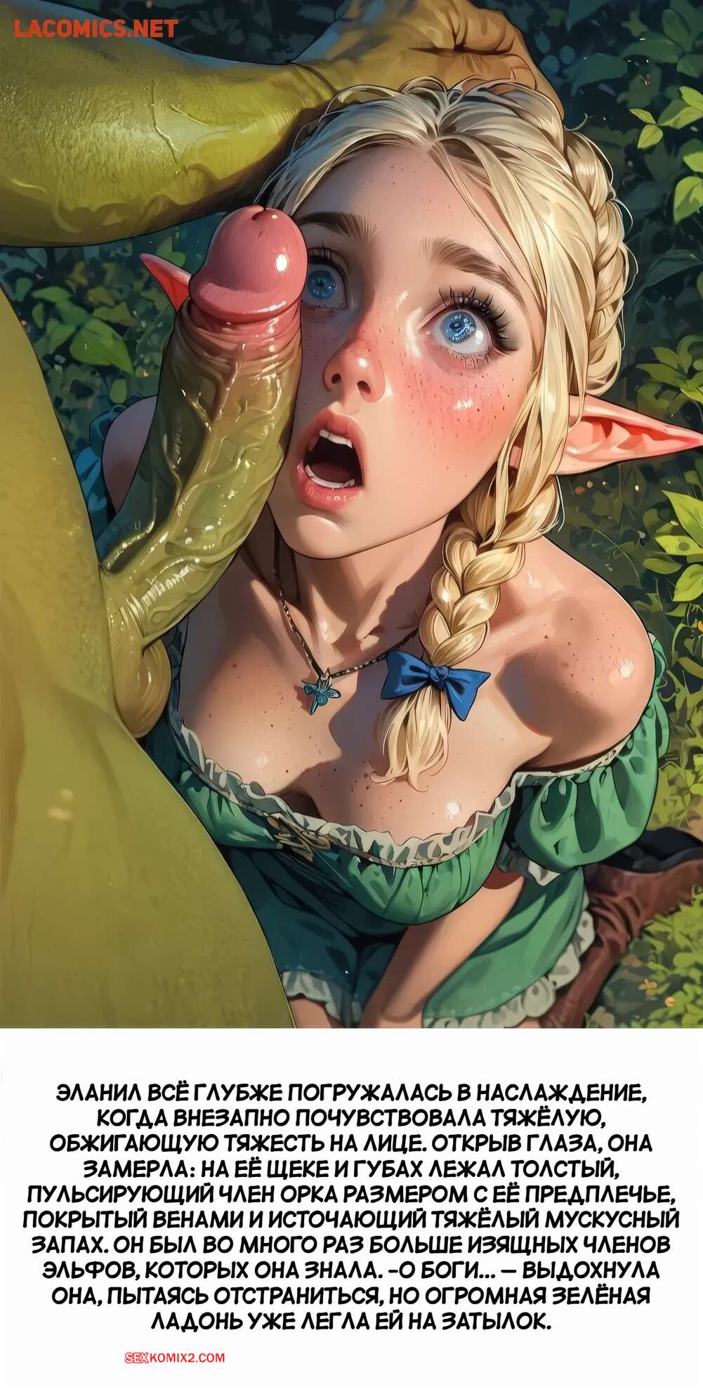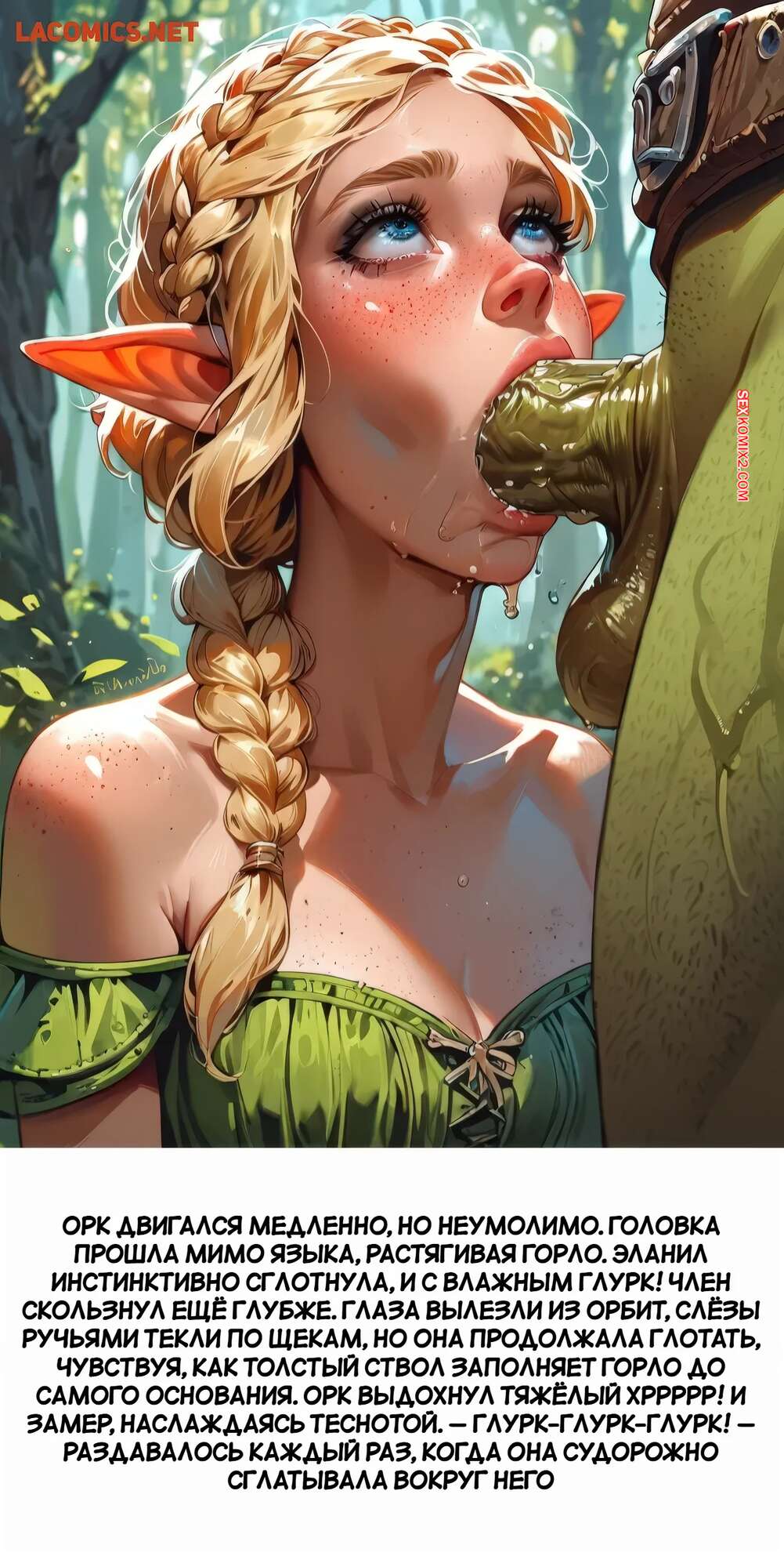 Порно комикс Эланиэль. Elaniel. RedCherry Гоблин встретил в лесу сексуальную блондинку и решил с ней пошалить. Он поставил девушку на колени и дал ей отсосать свой член, после чего хорошенько ее выебал.