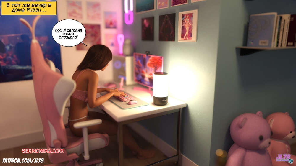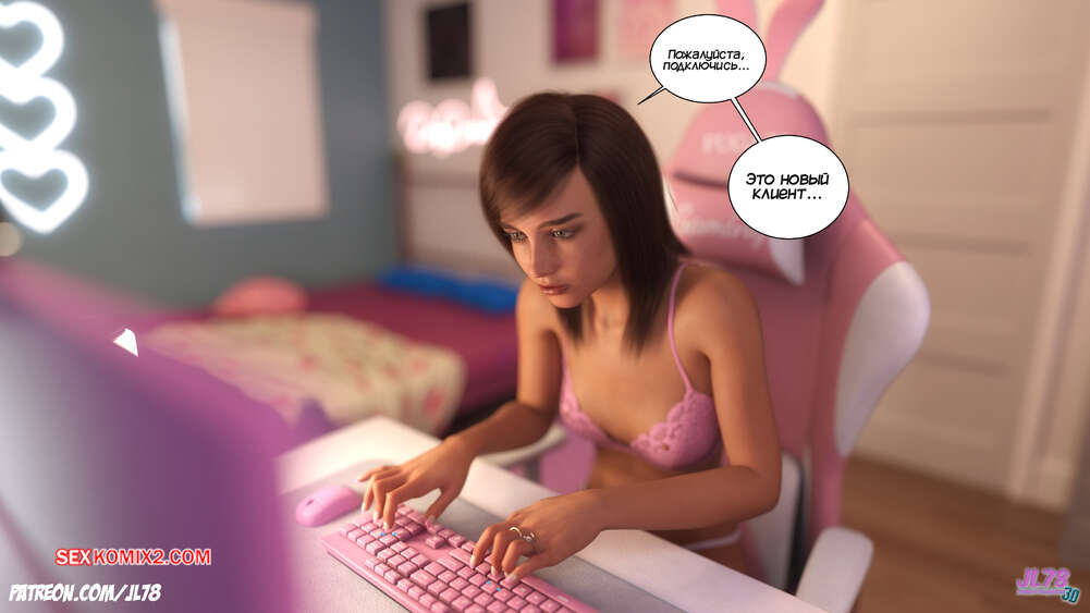 Порно комикс Семейка Риззи. Часть 3. The Rizzi family. JL78 Красотка запустила компьютер, чтобы провести встречу со своим новым клиентом. Парень уже достал свой твердый член и просит девушку поскорее раздеться, чтобы насладиться ее прелестями.