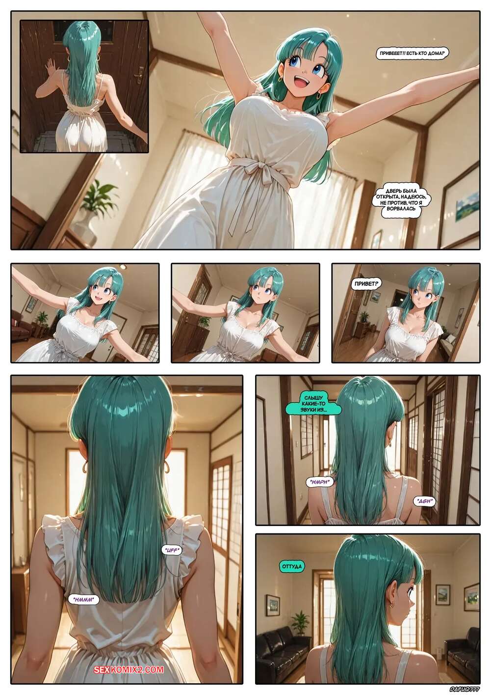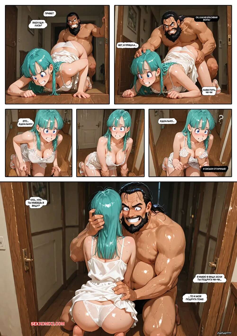 Порно комикс Dragon Ball. Воссоединение скучаюших друзей Чичи. Dafug777. Бульма зашла в гости к своей подруге Чичи и спалила ее за еблей с двумя мужиками, от чего возбудилась. Парни переключили внимание на красотку и сунули ей хуи в пизду и ротик.