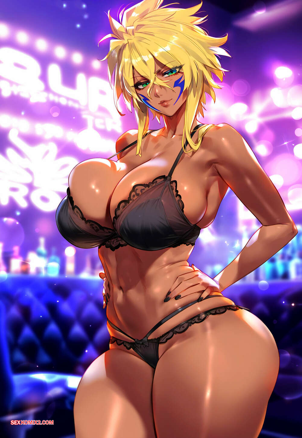 Порно комикс Tier Harribel x BBC 2. Floxin Горячая блондинка позирует в клубе перед темнокожим парнем, желая пошалить. Она отсосала его большой хуй, после чего раздвинула ножки и дала выебать свою пизду.