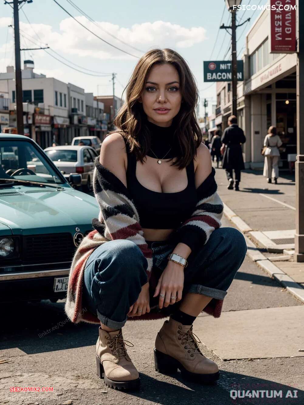 Порно комикс Angelina Jolie. 90s Style. QuantumAI Сборник ИИ артов с горячей брюнеткой Анжелиной Джоли в стиле девяностых. Девушка выбирает откровенные наряды, чтобы показать во всей красе свои прелести.