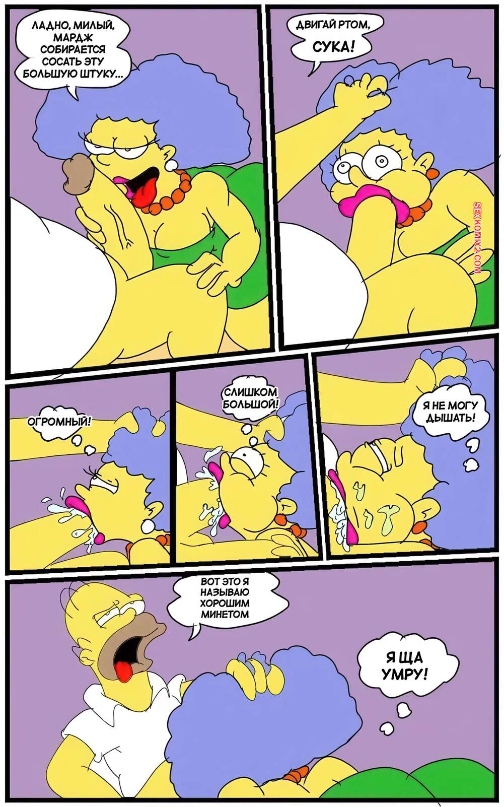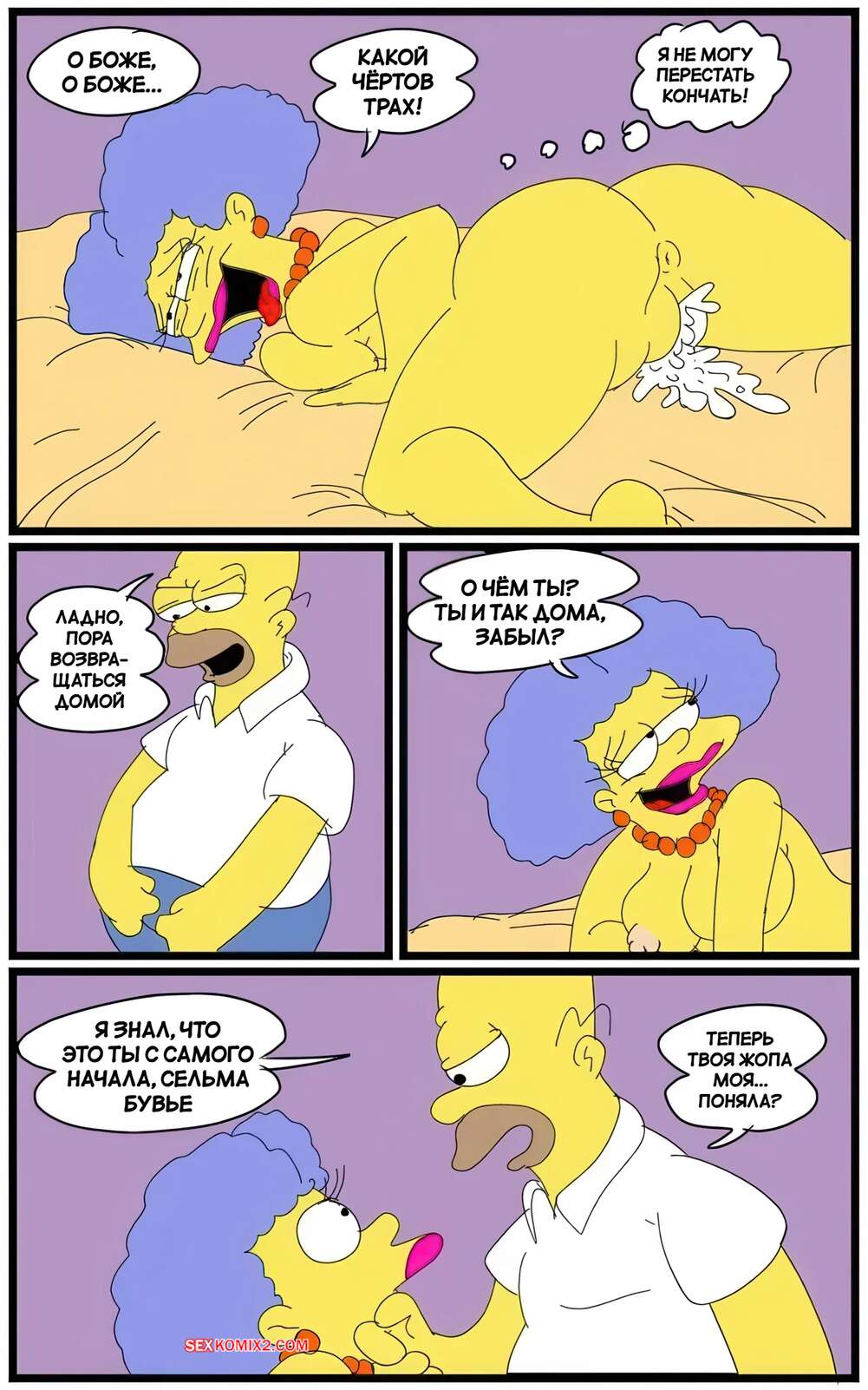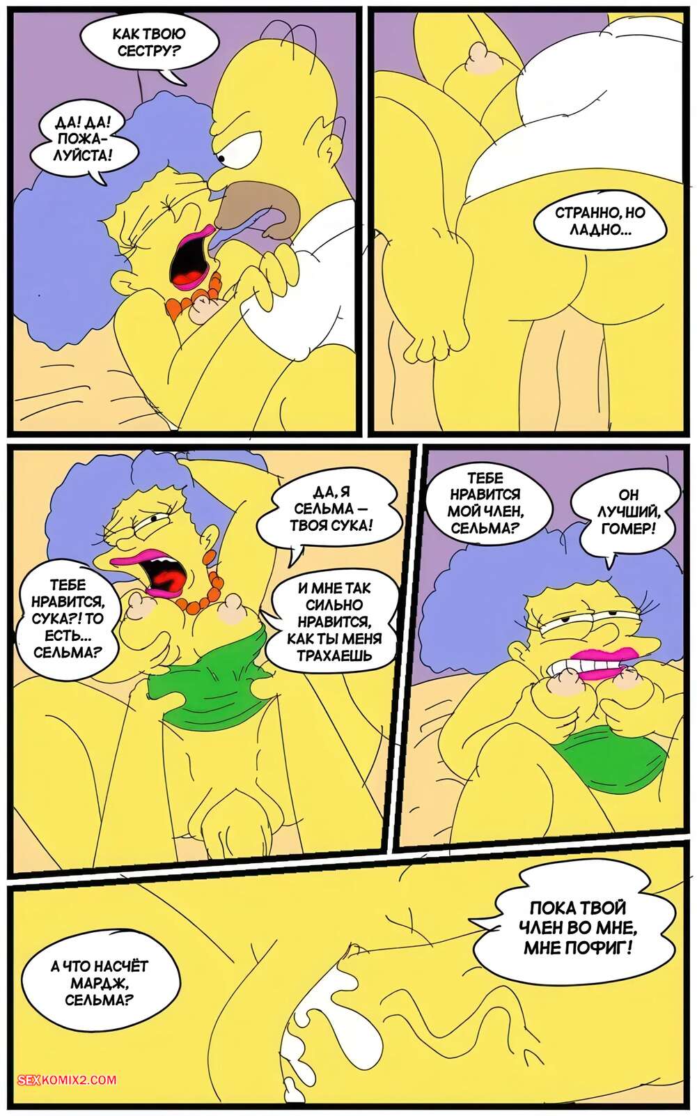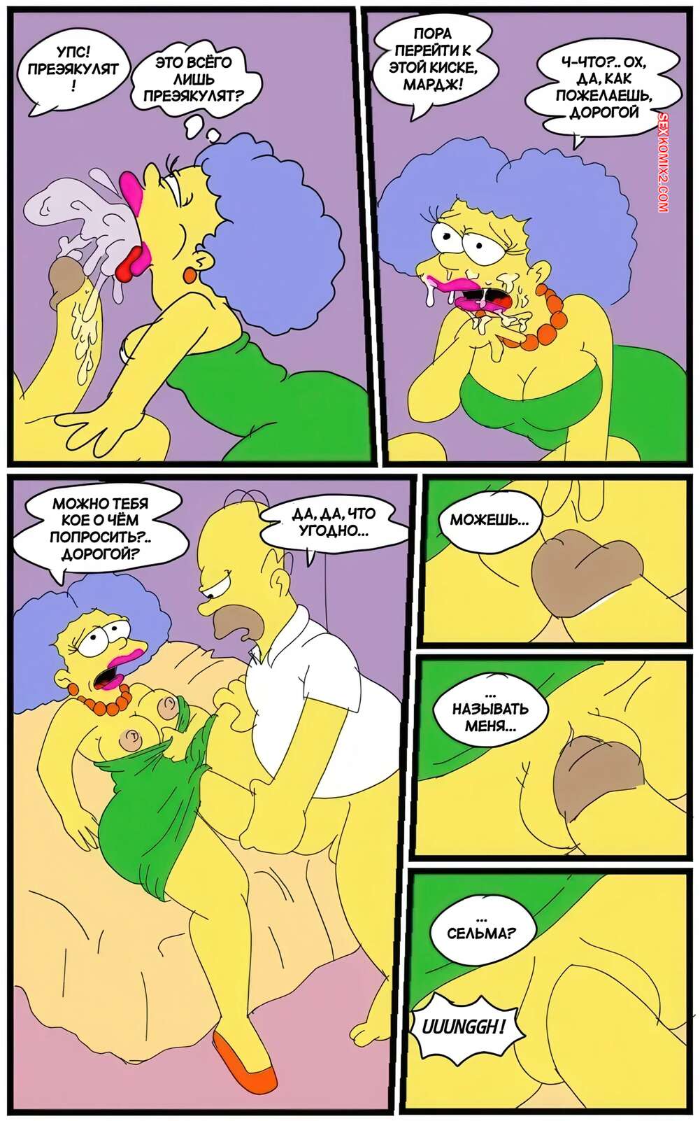 Порно комикс Симпсоны. Борьба Сельмы. Selmas Struggle. maxtlat. Пьяный Гомер вернулся домой возбужденным и Сельма решила воспользоваться ситуациейц. Она надела наряд Мардж и стала сосать хуй мужика, после чего дала ему выебать свою пизду, став его шлюхой.