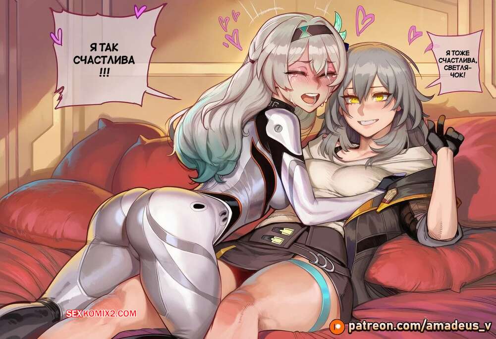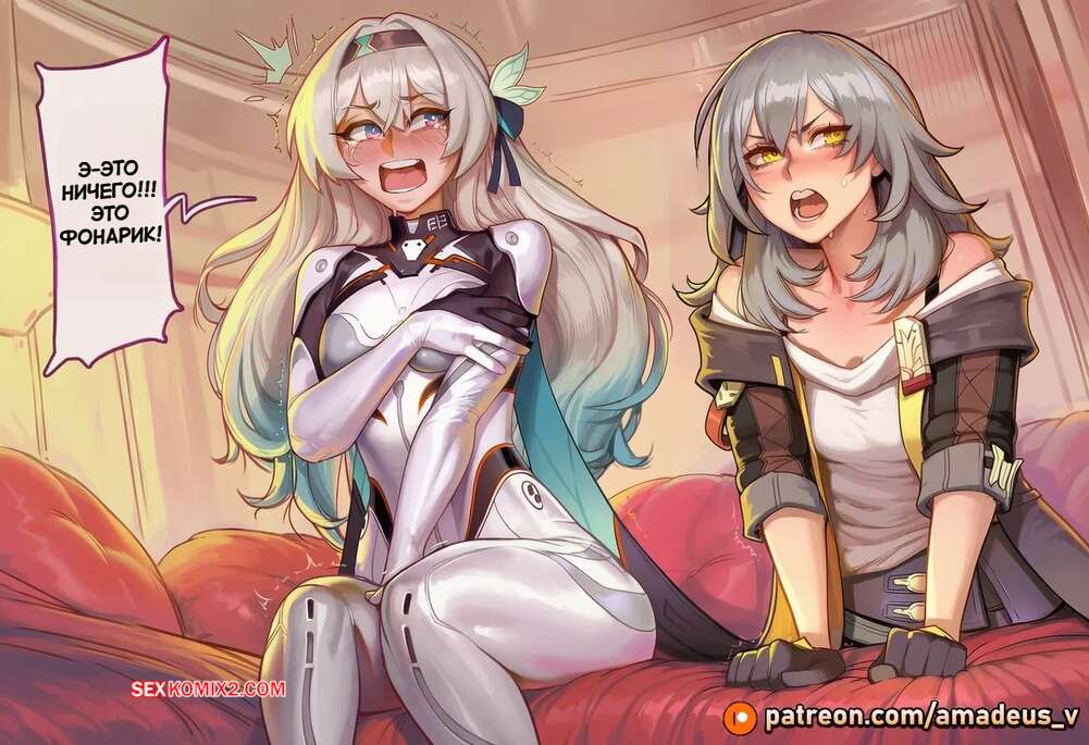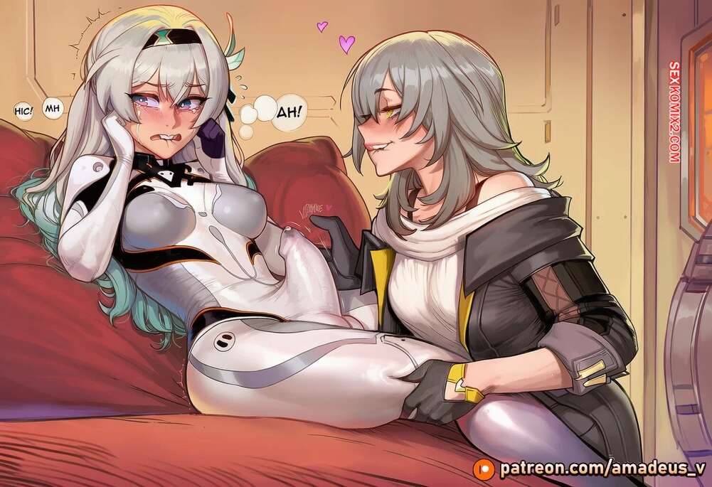 Порно комикс Honkai Star Rail. Синдром хаотического члена. Entropy Cock Syndrome. Amadeus V. Блондиночка возбудилась и попросила свою подругу помочь ей со стояком. Красотка встала на колени и стала ей отсасывать, после чего раздвинула ножки и дала себя выебать.