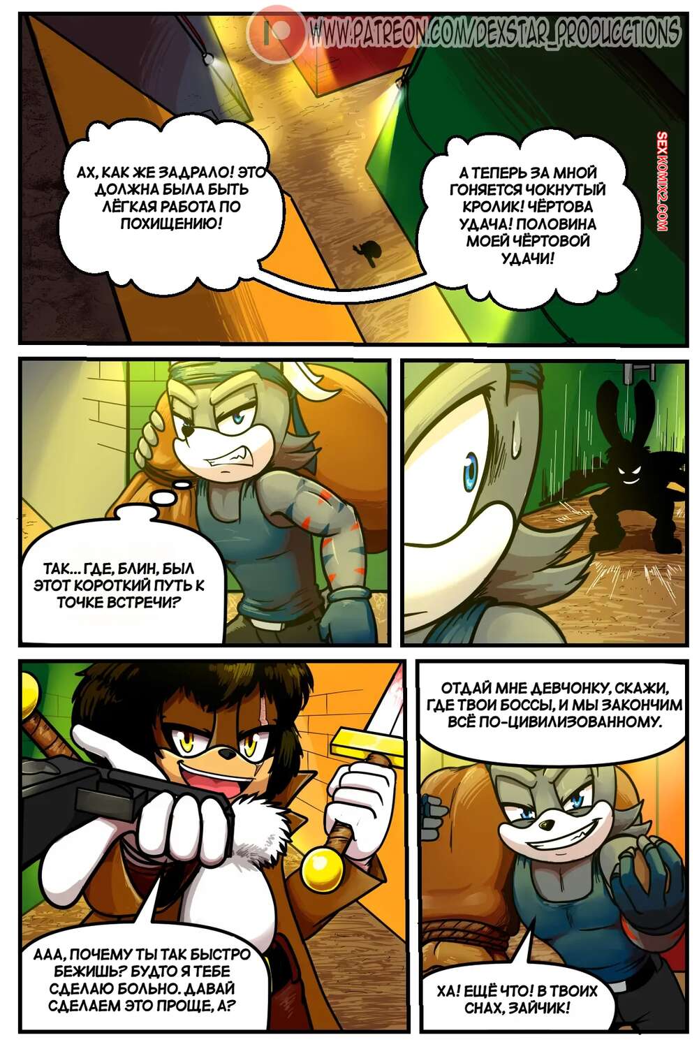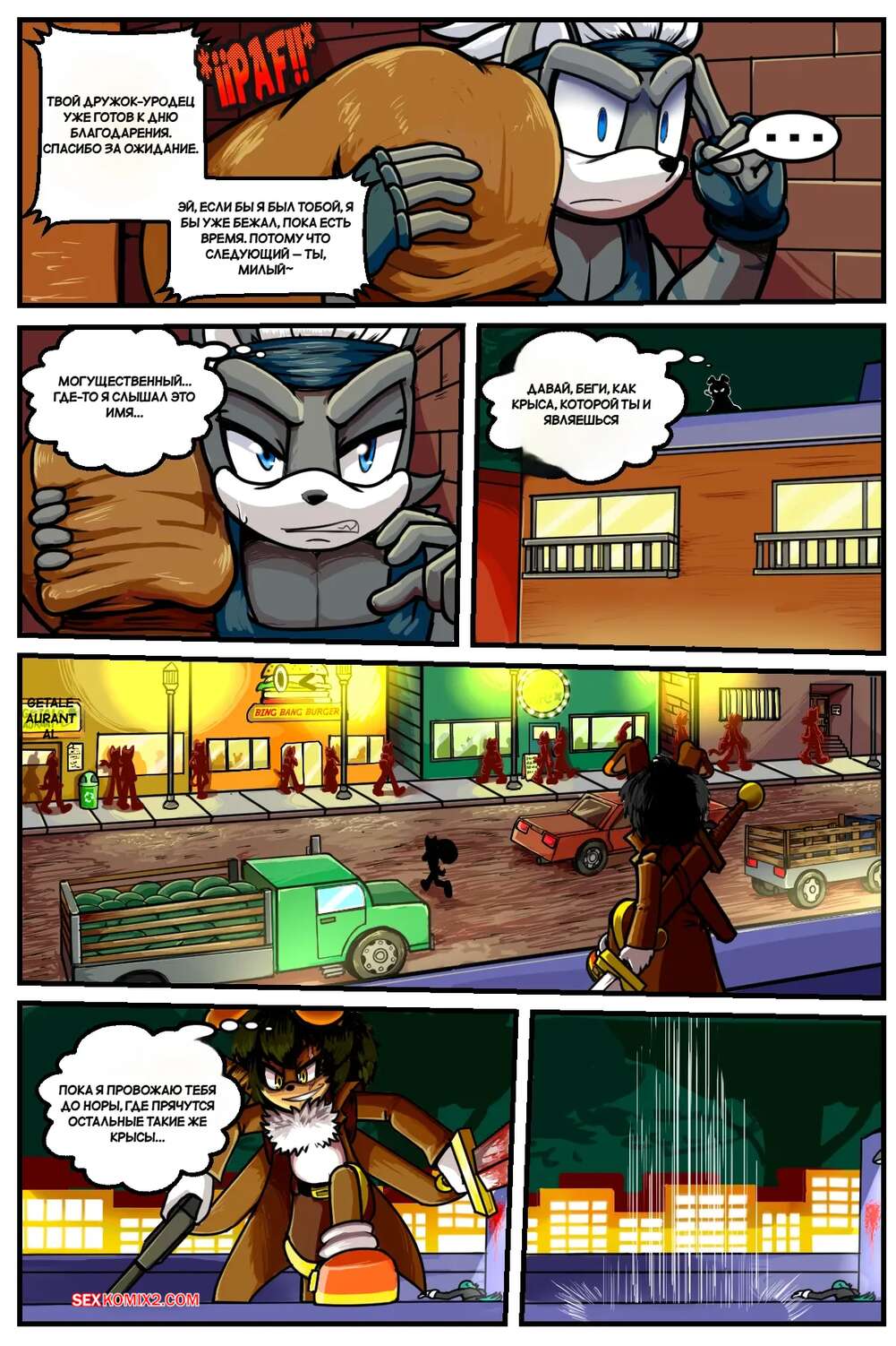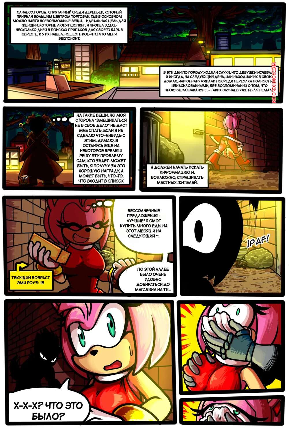 Порно комикс Соник. Аллея секса. Часть 1. The Alley Of Sex. DEXstar. Горячая красотка забрела ночью в темный переулок, где встретила парня. Он решил насладиться телом девушки и поставил ее на колени, чтобы она отсосала его хуй, после чего он хорошенько оттрахал пизду девушки.
