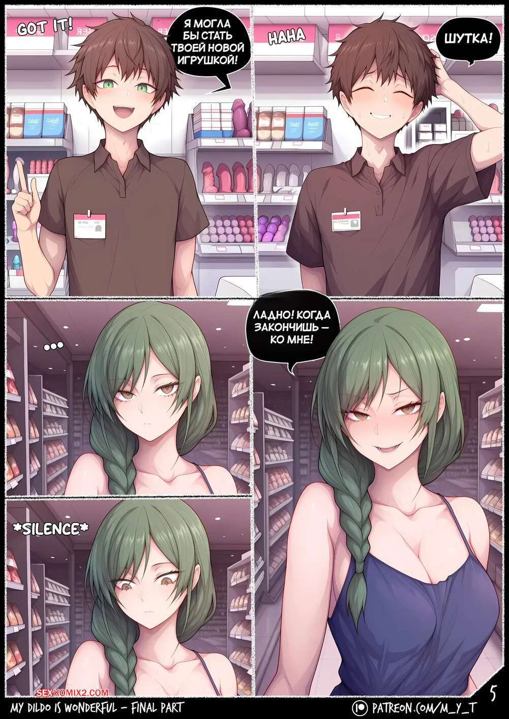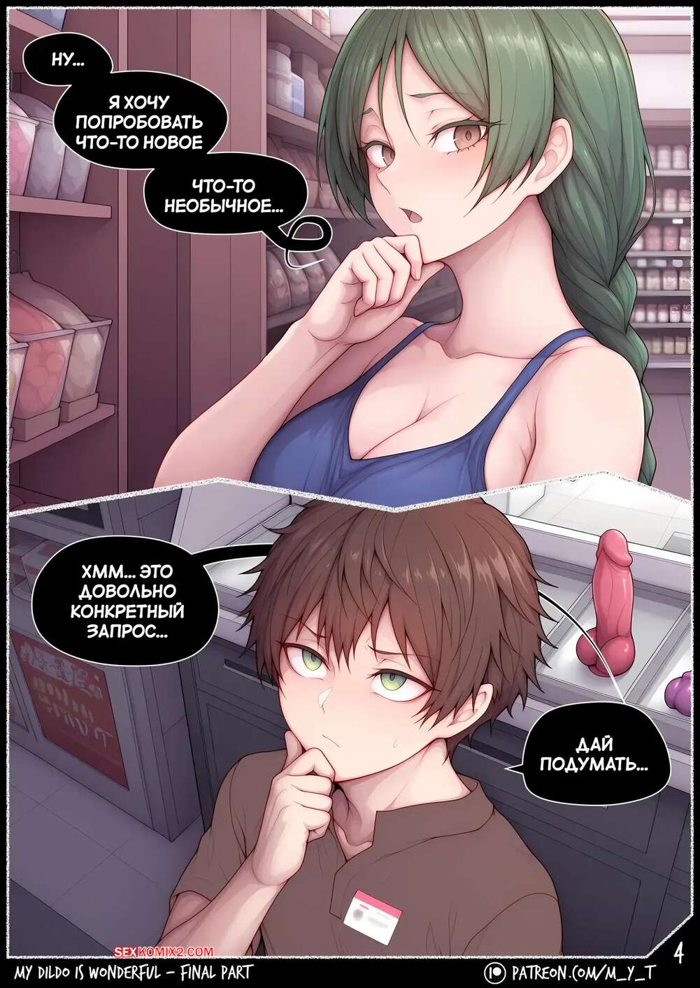 Порно комикс Мой дилдо великолепен. My Dildo Is Wonderful. Final Part. Comic Book. Горячая брюнетка пришла в сексшоп, чтобы купить себе дилдо. Она положила глаз на парня продавца и позвала его к себе, чтобы он заполнил ее пизденку своим членом, а попку с помощью дилдо.