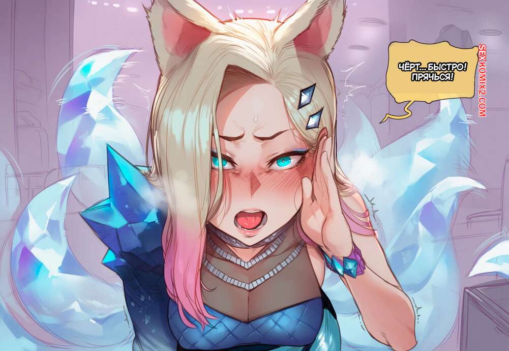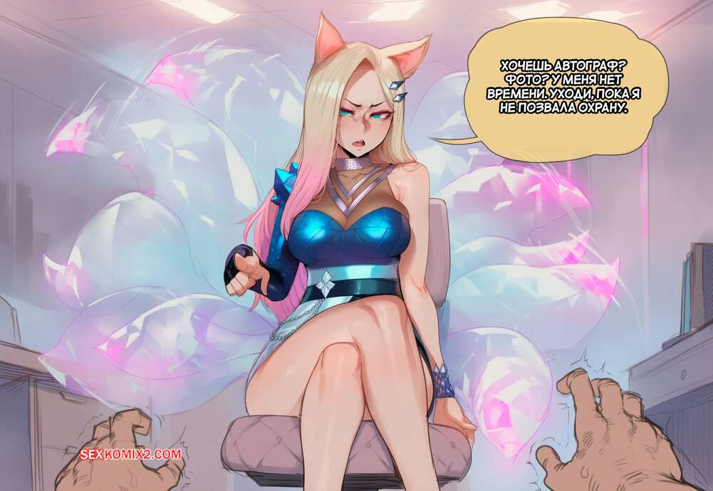 Порно комикс Ахри и ее надоедливый фанат. Ahri And Her Annoying Super Fan. Hoorpy. Парень фанатеет по горячей красотке Ахри и желает ее трахнуть. Он залез под стол и стал лизать пизду красотки, после чего она раздвинула ножки и дала себя выебать в пизду и задницу.