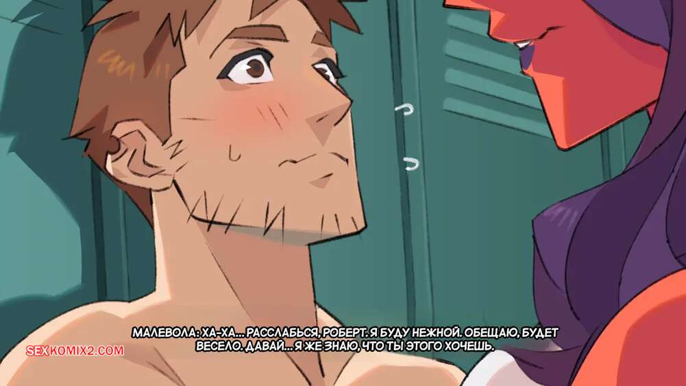 Порно комикс Индивидуальные занятия с Малеволой. Malevolas Private Training. nisego. Горячая брюнетка навестила парня в раздевалке, желая пошалить. Она стянула с него полотенце и стала сосать большой хуй парня, после чего раздвинула ножки и дала себя выебать.