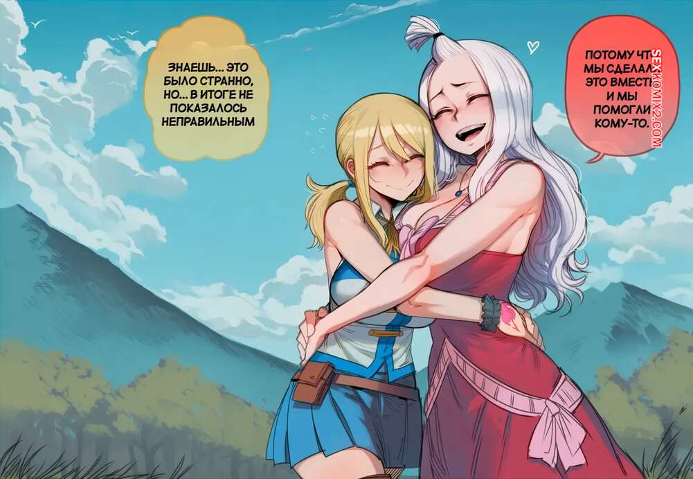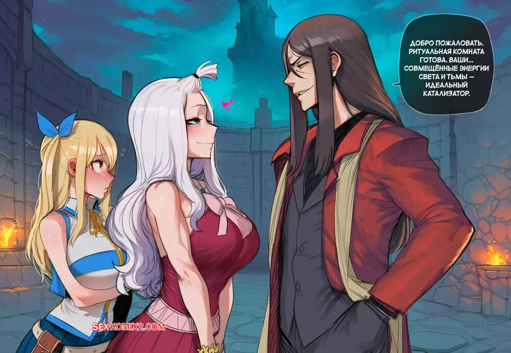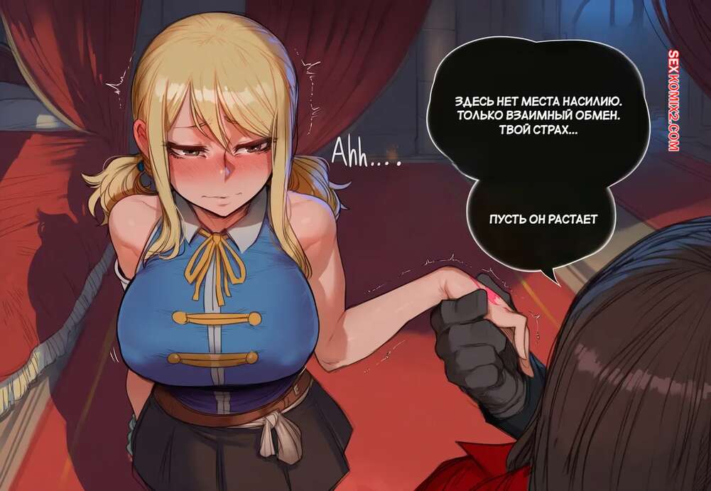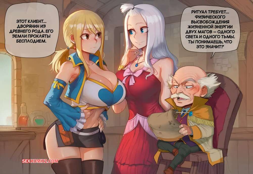 Порно комикс Fairy Tail. Проклятый договор. The Cursed Contract. Hoorpy Горячие блондинки отправились в спальню парня, чтобы удовлетворить его желания. Красотки разделись и легли на кровать, где раздвинули ножки, позволив парню себя хорошенько выебать.