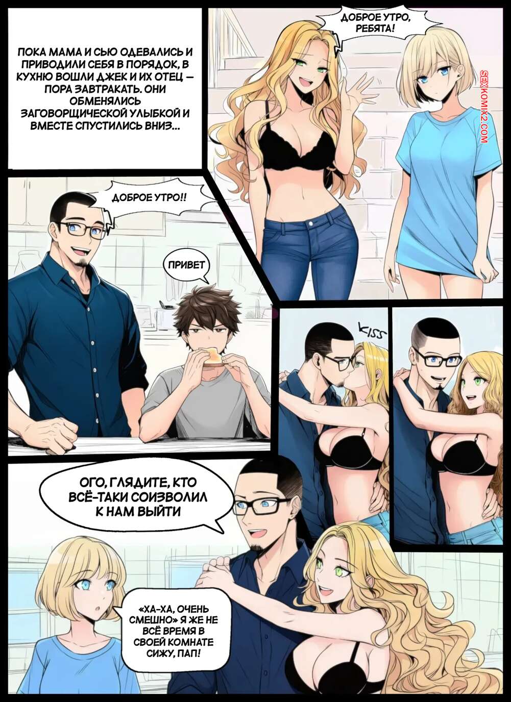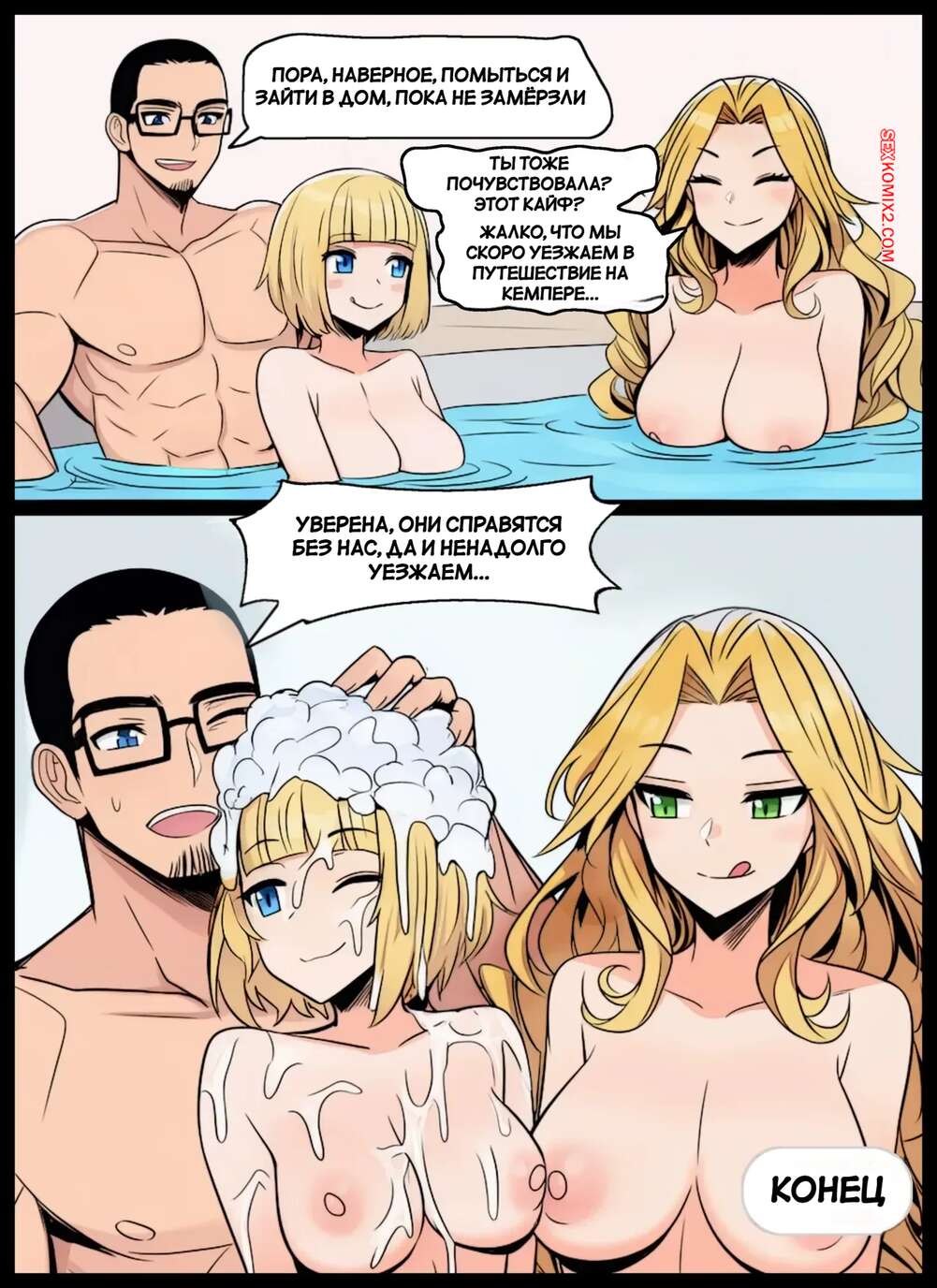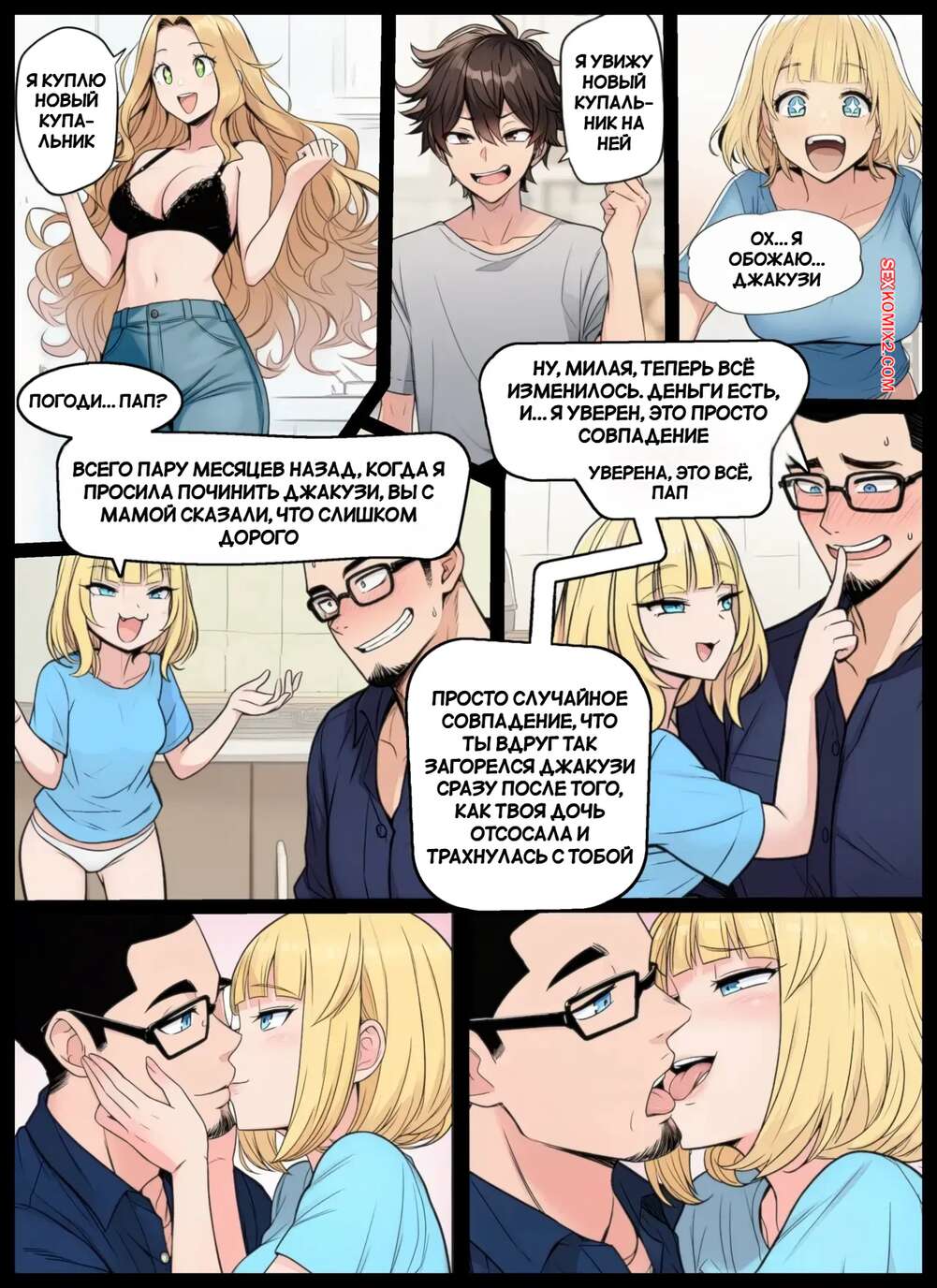 Порно комикс Больше никаких секретов. Часть 2. No more Secrets. DallasDarkchylde Молодая девушка пошла принять душ, где к ней присоединилась ее мамочка и предложила искупаться вместе. Они немного пошалили, после чего вышли к бассейну, чтобы порадовать отца и сына.