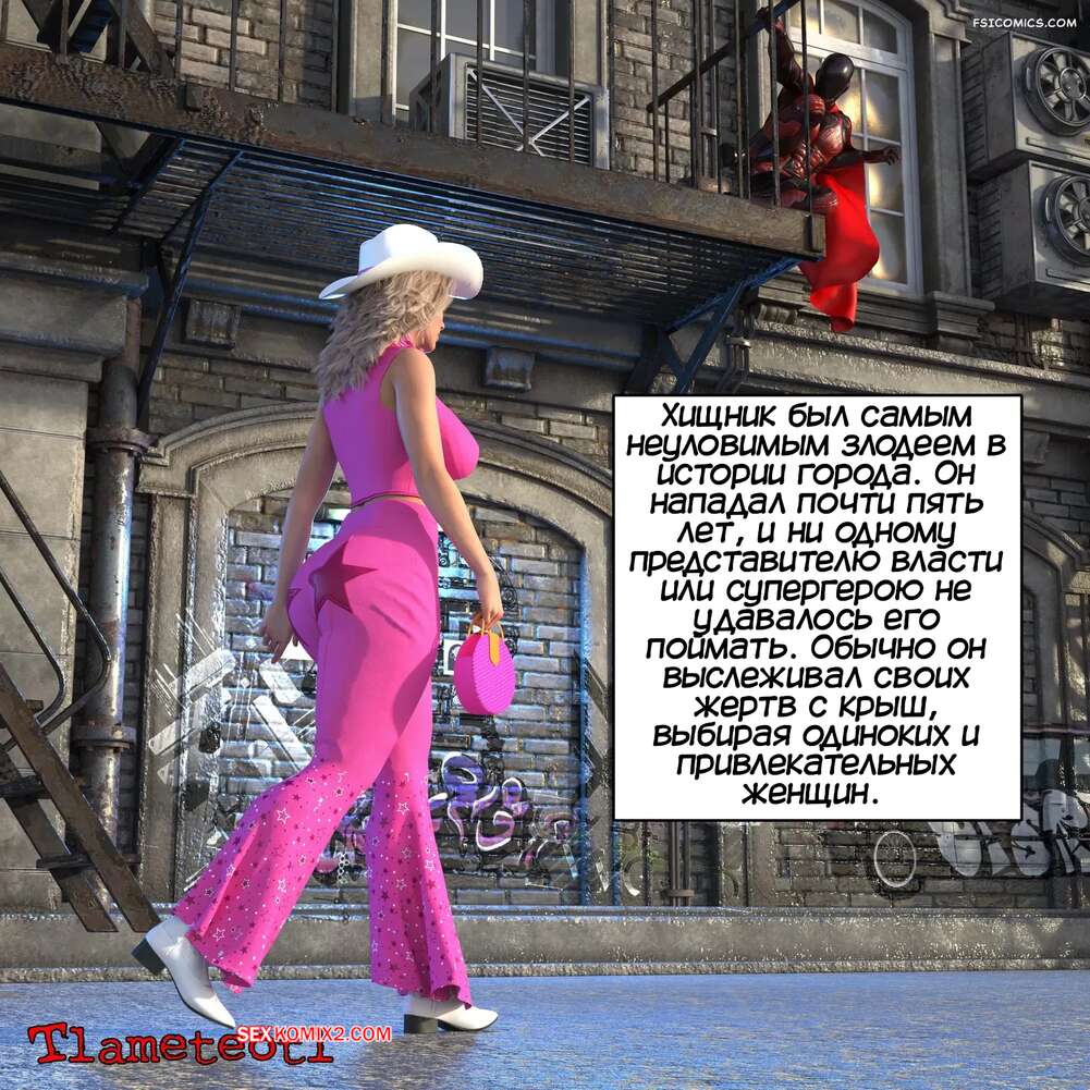 Порно комикс Хищник. Predator. Tlameteotl Горячая блондинка шла одна в переулке и там на нее напал злодей Хищник. Он перенес красотку в карманную вселенную, где дал ей отсосать свой член и хорошенько ее выебал.
