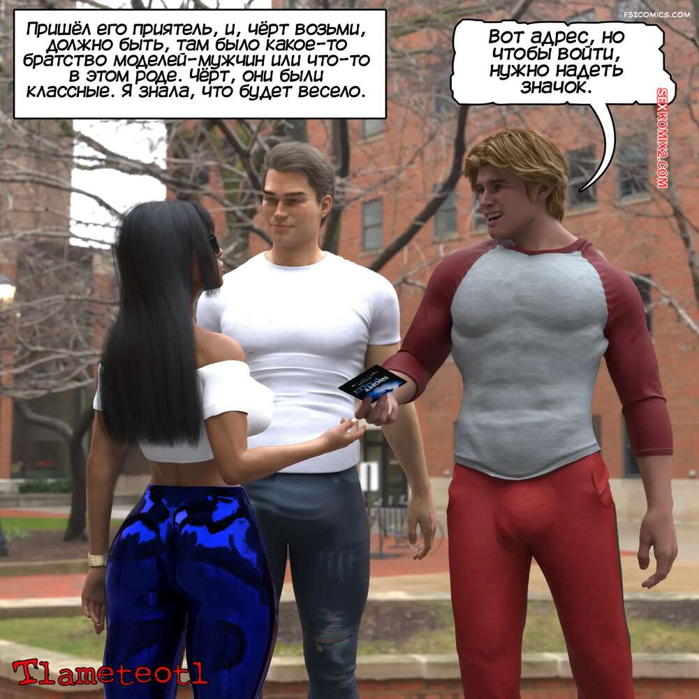 Порно комикс Девушка. Girl. Tlameteotl Горячая брюнетка гуляет по кампусу университета в поисках симпатичных парней. Один из них подкатил к девушке и пригласил ее на вечеринку, куда девушка с удовольствием отправилась.