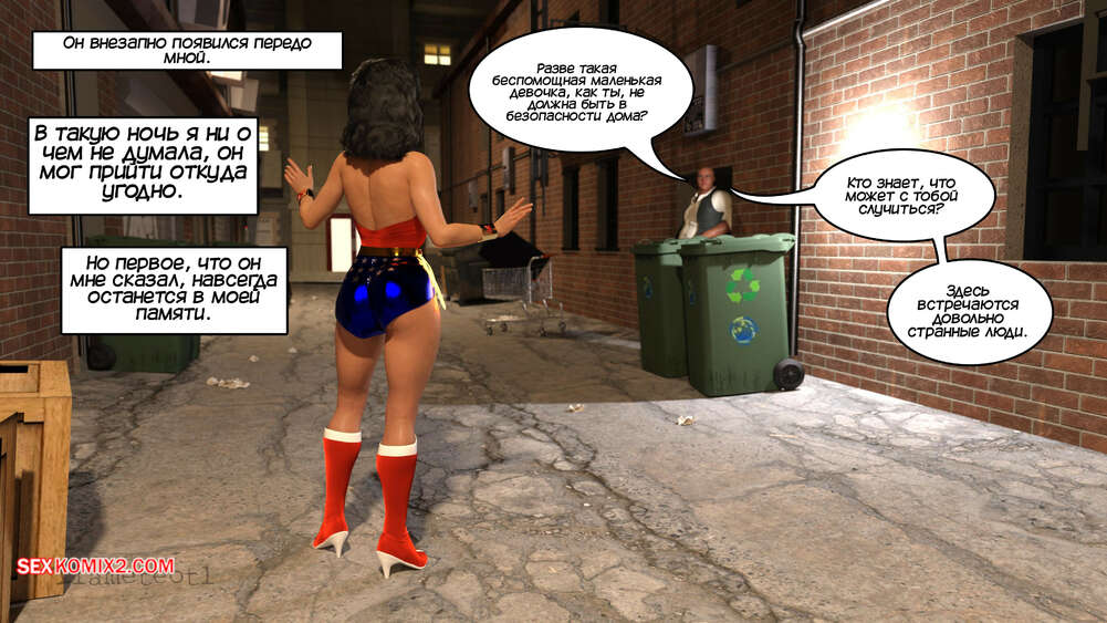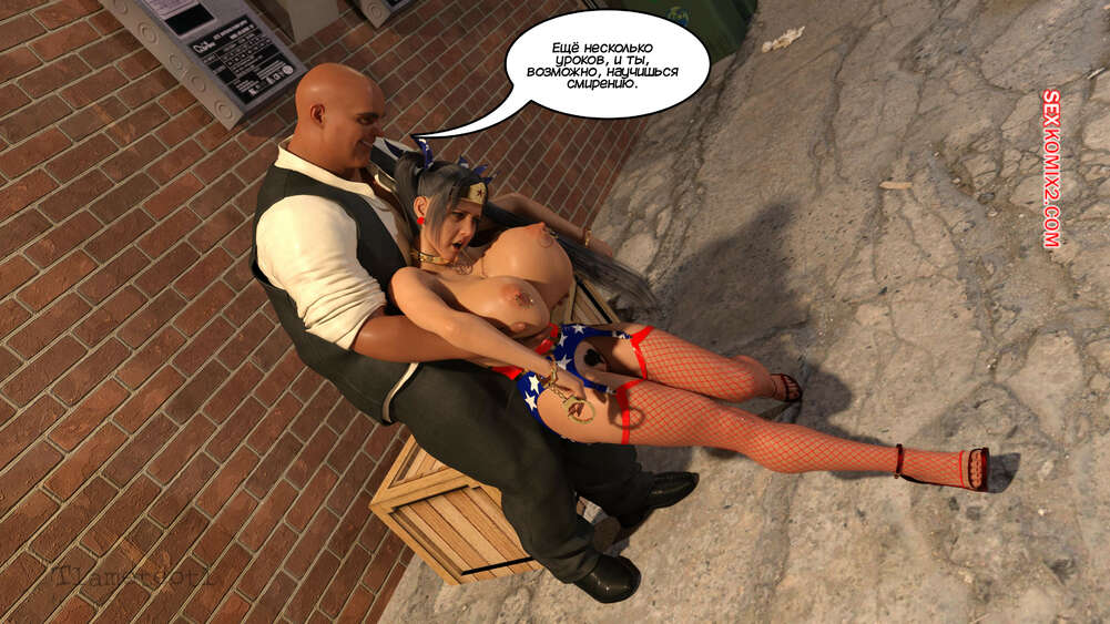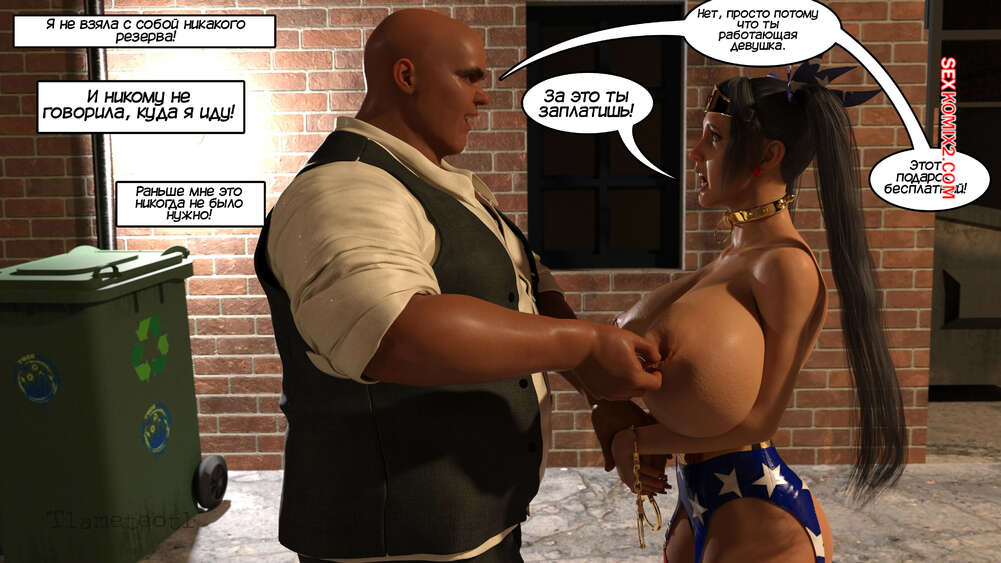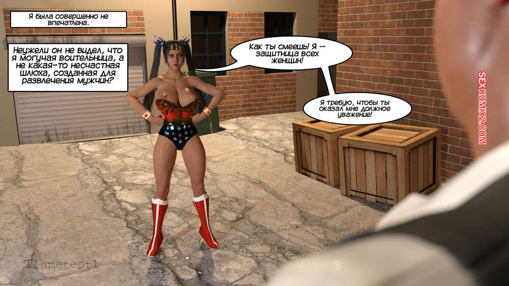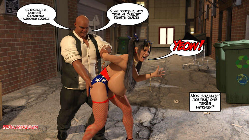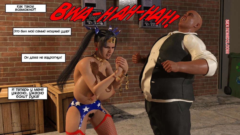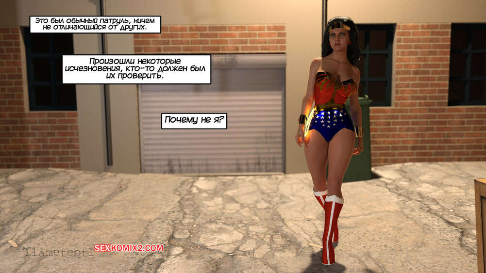 Порно комикс DC. Кошмар Чудо женщины. Wondys Nightmare. Tlameteotl Красотка Чудо Женщина отправилась на патруль ночью и наткнулась в переулке на мужика. Он изменил ее тело и увеличил сиськи красотки, после чего стал ее хорошенько шлепать.