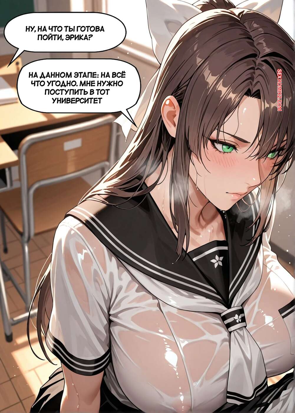 Порно комикс Эрика трахается с профессором ради пятерки. Slaughterbug Горячая брюнетка осталась после уроков со своим учителем, чтобы его соблазнить и получить пятерку. Девушка встала на колени и отсосала большой хуй парня, после чего раздвинула ножки и дала ему себя выебать.