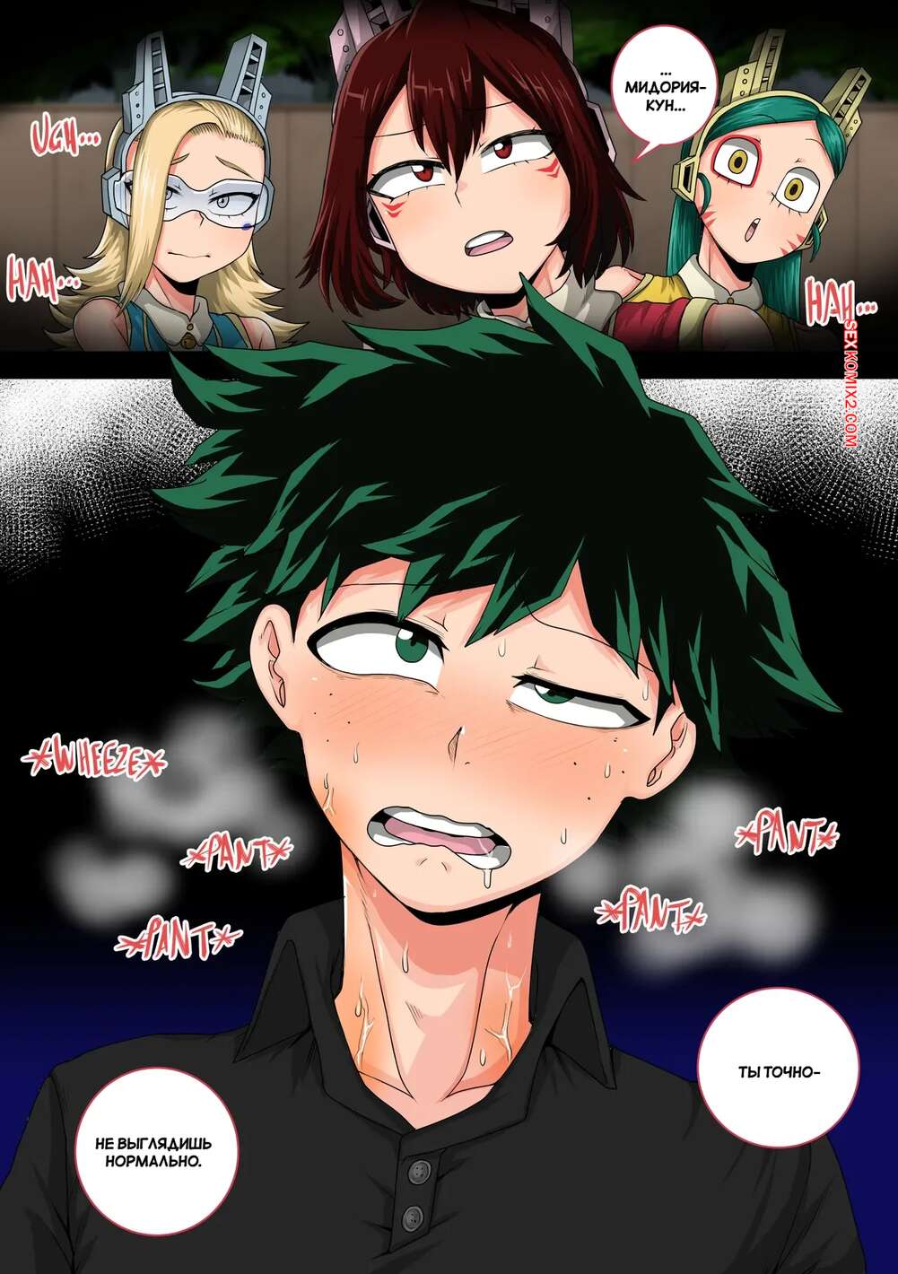 Порно комикс Академия. Моя гаремная академия. Часть 8.3. Juna Juna Juice Аппетитные красотки не могут себя контролировать рядом с огромным членом Деку. Девушки раздеваются и возбуждают своего дружка, после чего требуют, чтобы он выебал их во все дырочки.